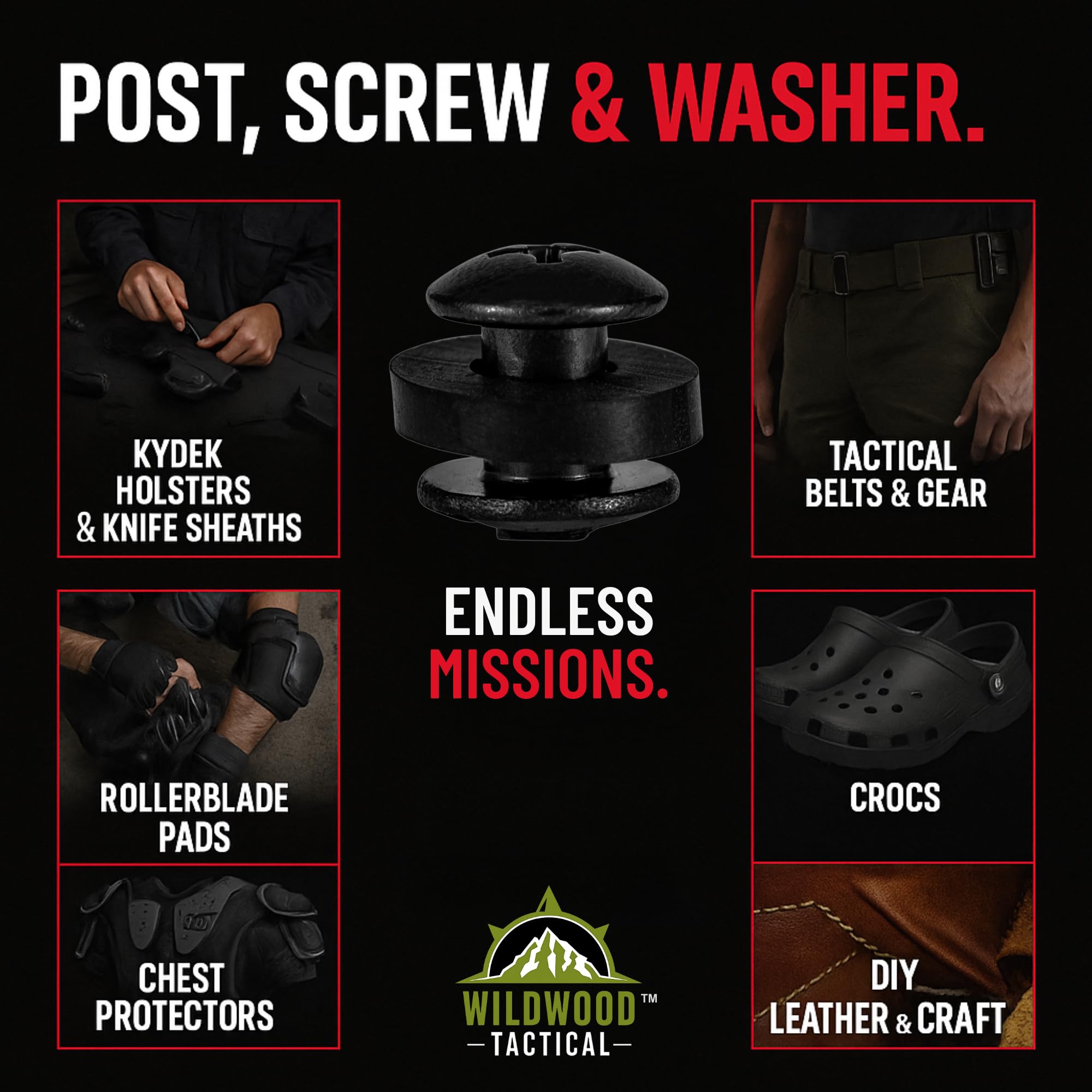 CHICAGO SCREWS - The best choice when it comes to DIY Kydex and Leather Holsters, Knife Sheaths, Belt Clips, or any other piece of tactical gear. Each pack includes 72 total pieces - 12 each of 1/4 and 3/8 inch sizes of Phillips Truss Heads, Open Slotted Post Fasteners, and Rubber Washers/Spacers