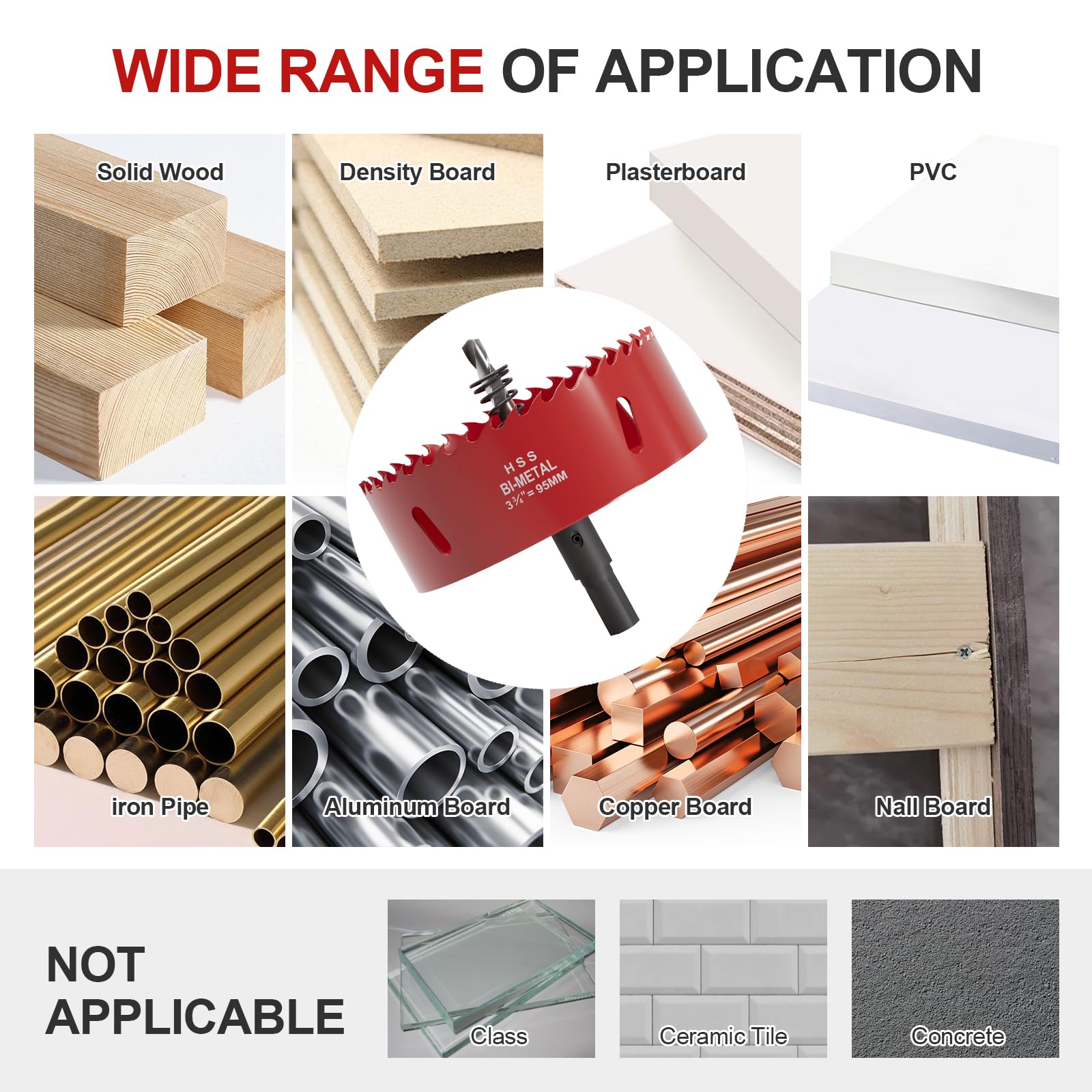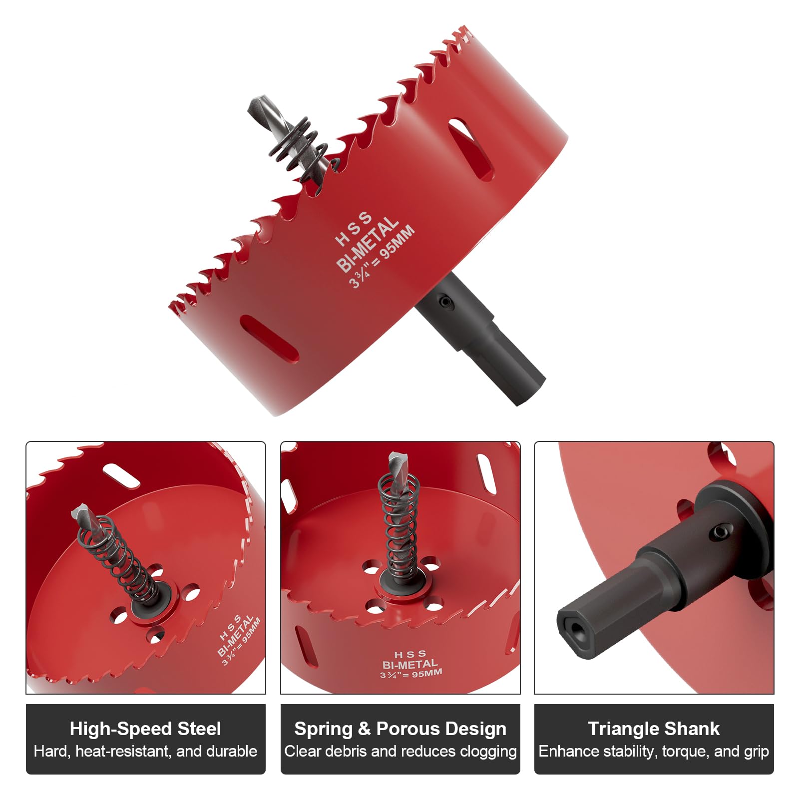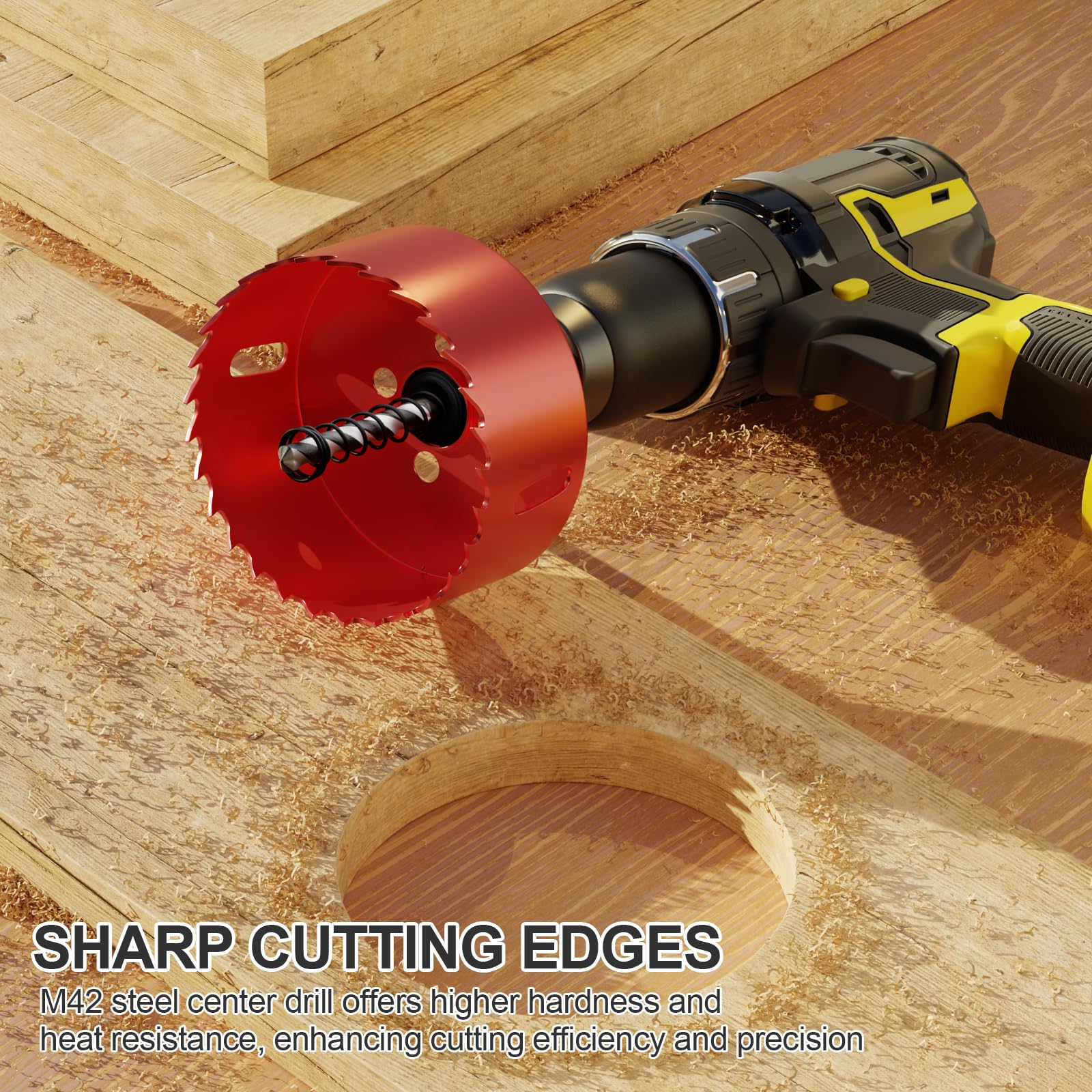 Sharp Cutting Edges: The hole saw features sharp and sturdy cutting edges, with the center drill made of M42 steel providing higher hardness and heat resistance; This ensures a sharp cutting edge, improving work efficiency and precision