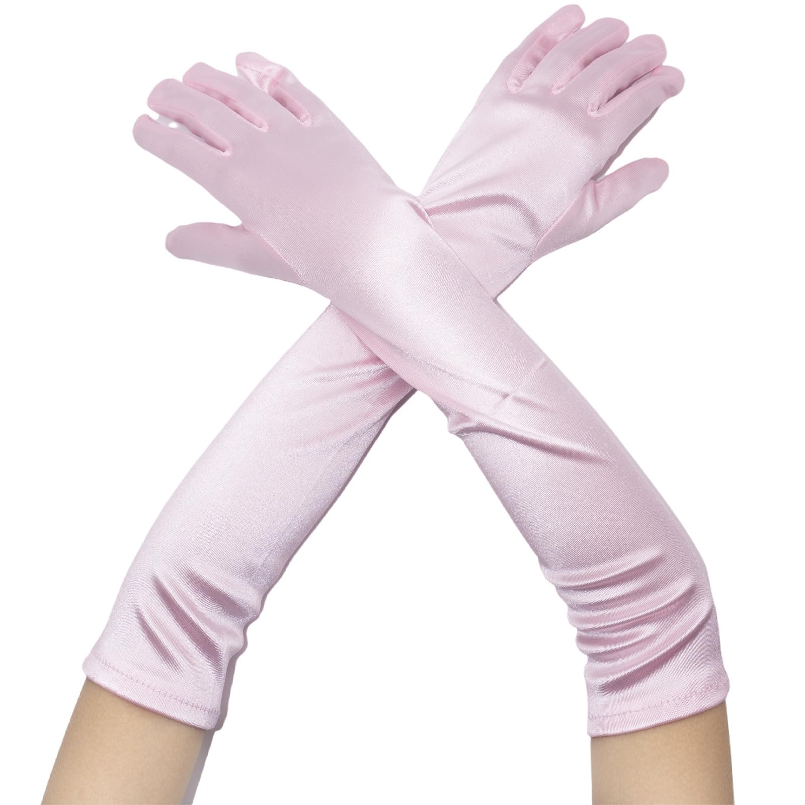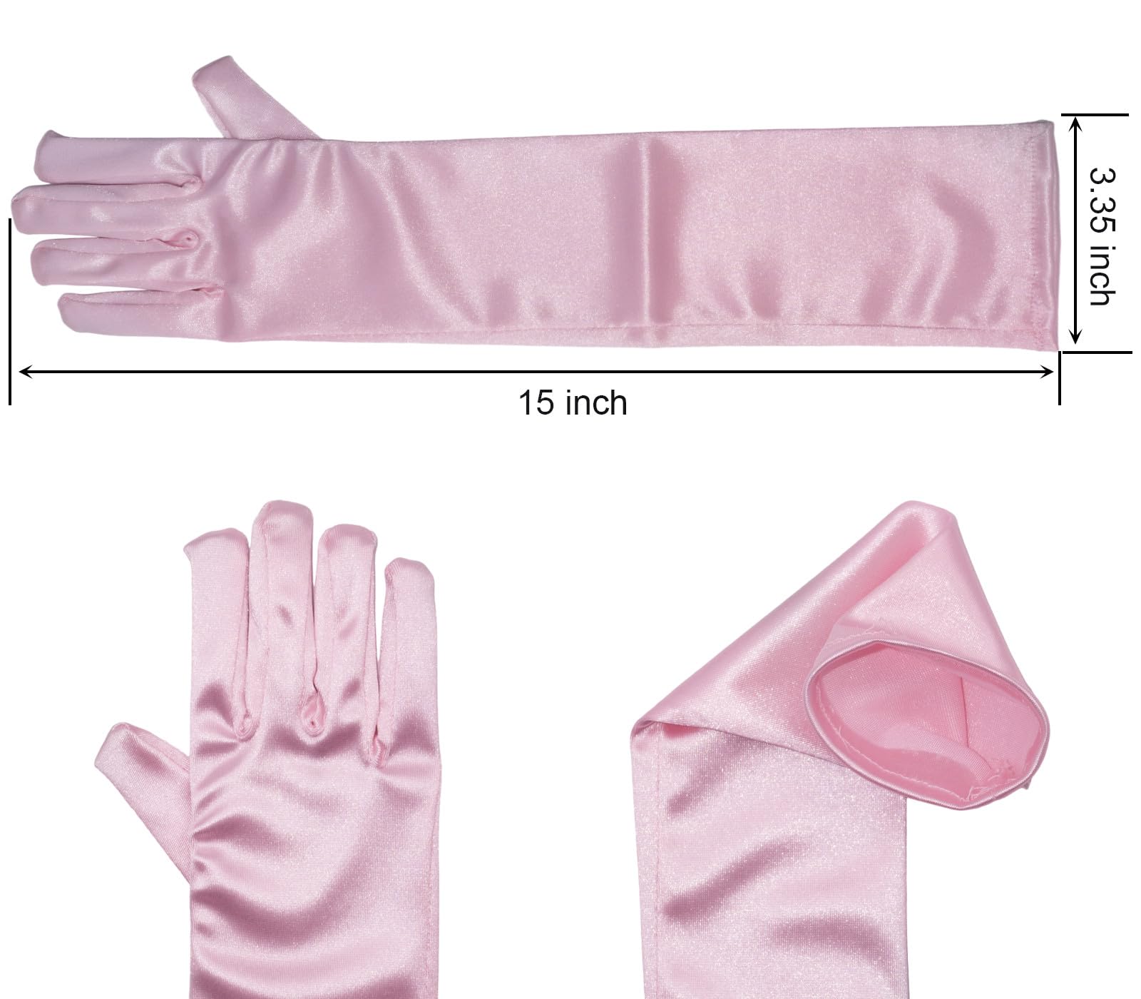 Material : Our girls dress up gloves with slightly stretchy satin fabric,soft to touch,comfortable to wear.