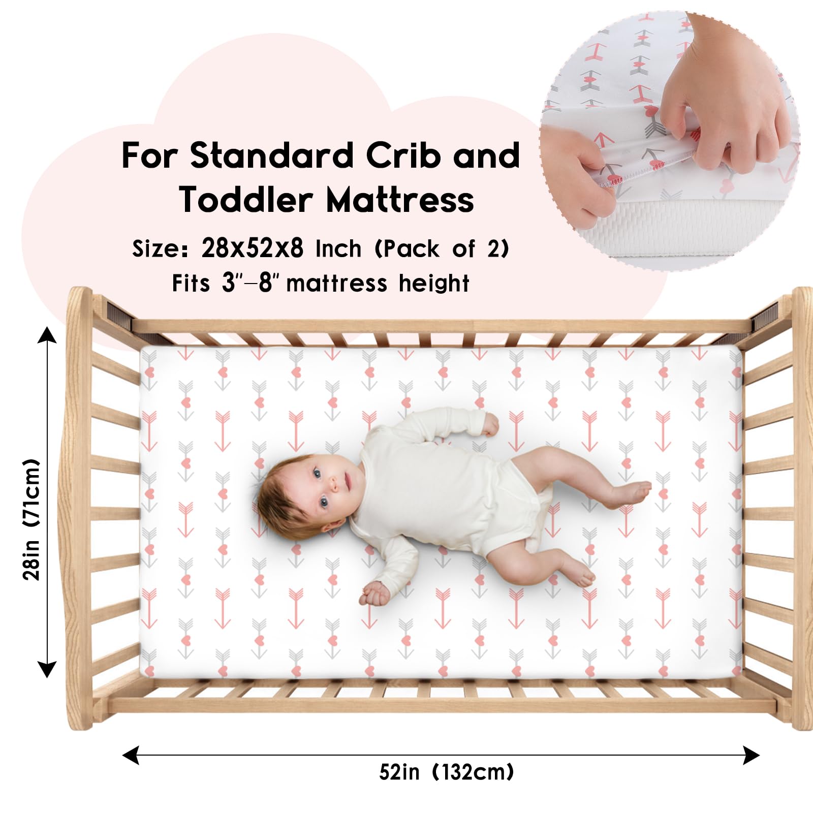 EASY CARE: These crib sheets are machine washable and will remain shape after wash, moms won't have to worry about shrinkage, fading, or pilling. Each package contains 2 x fitted crib sheet, you’ve always got one on hand.
