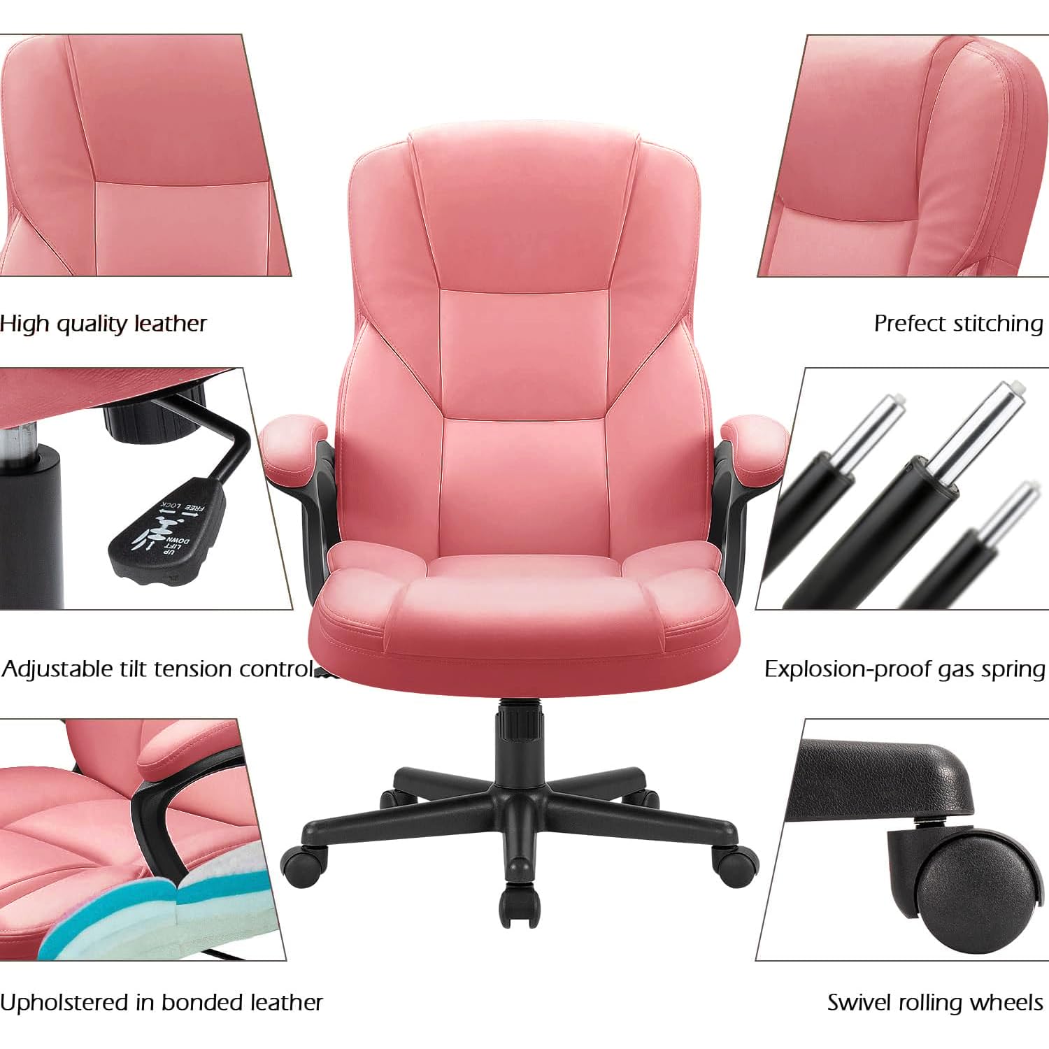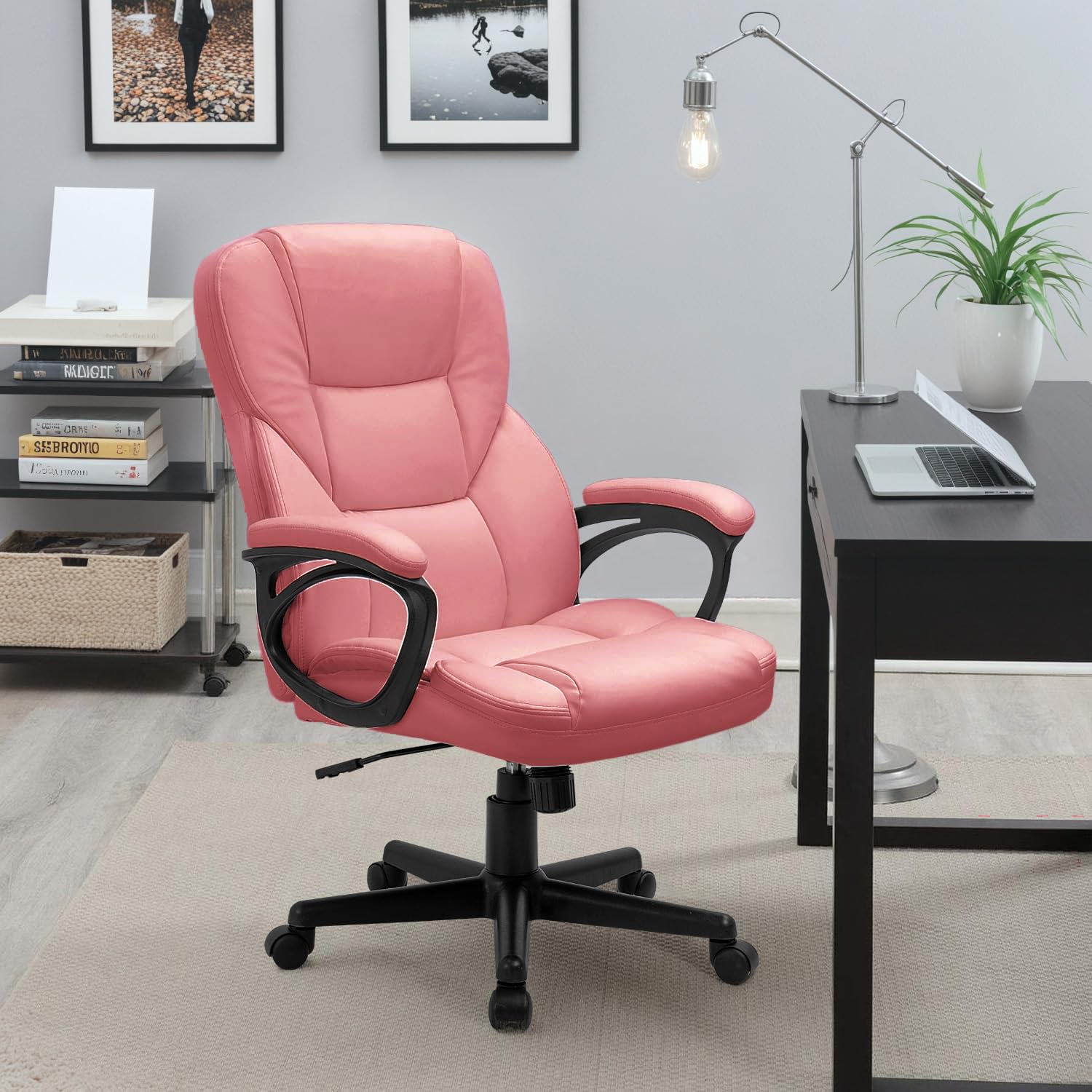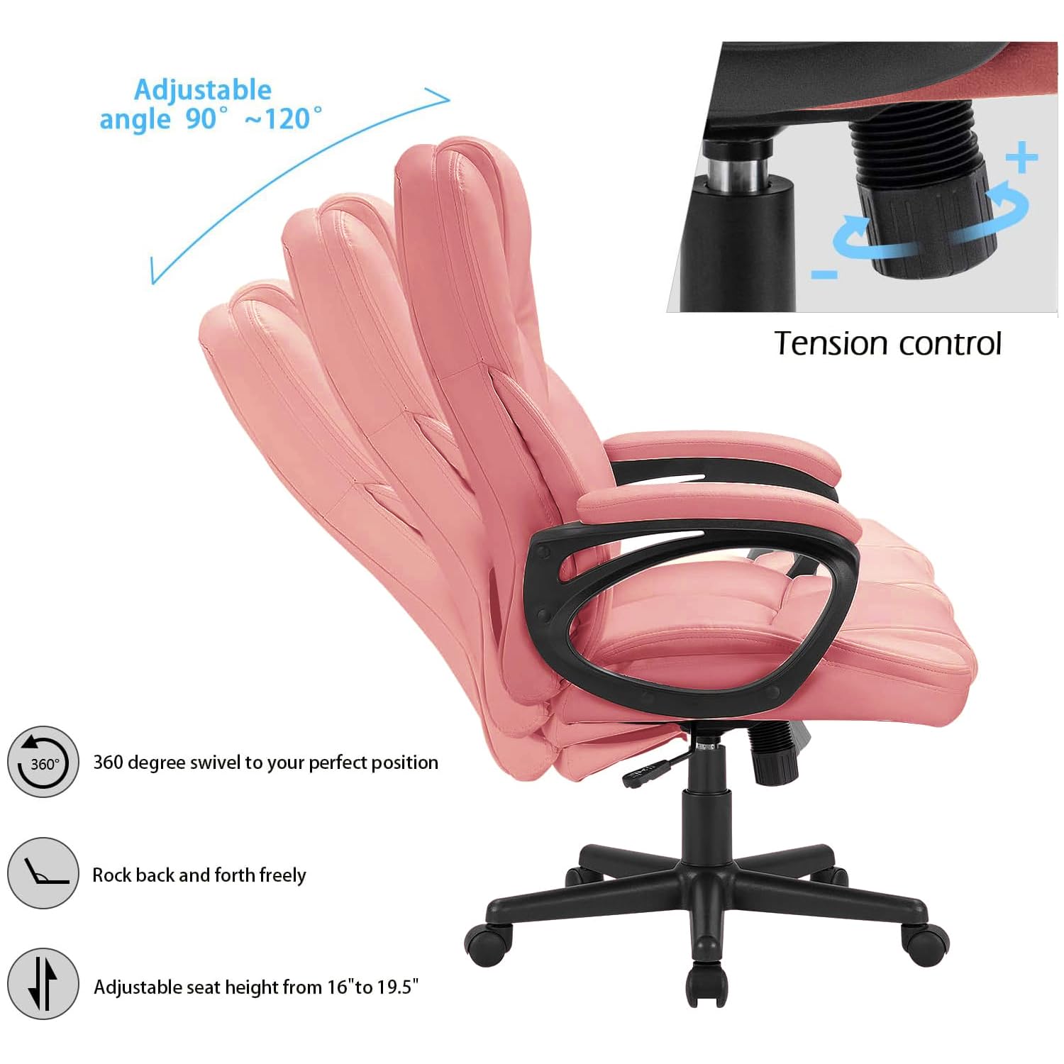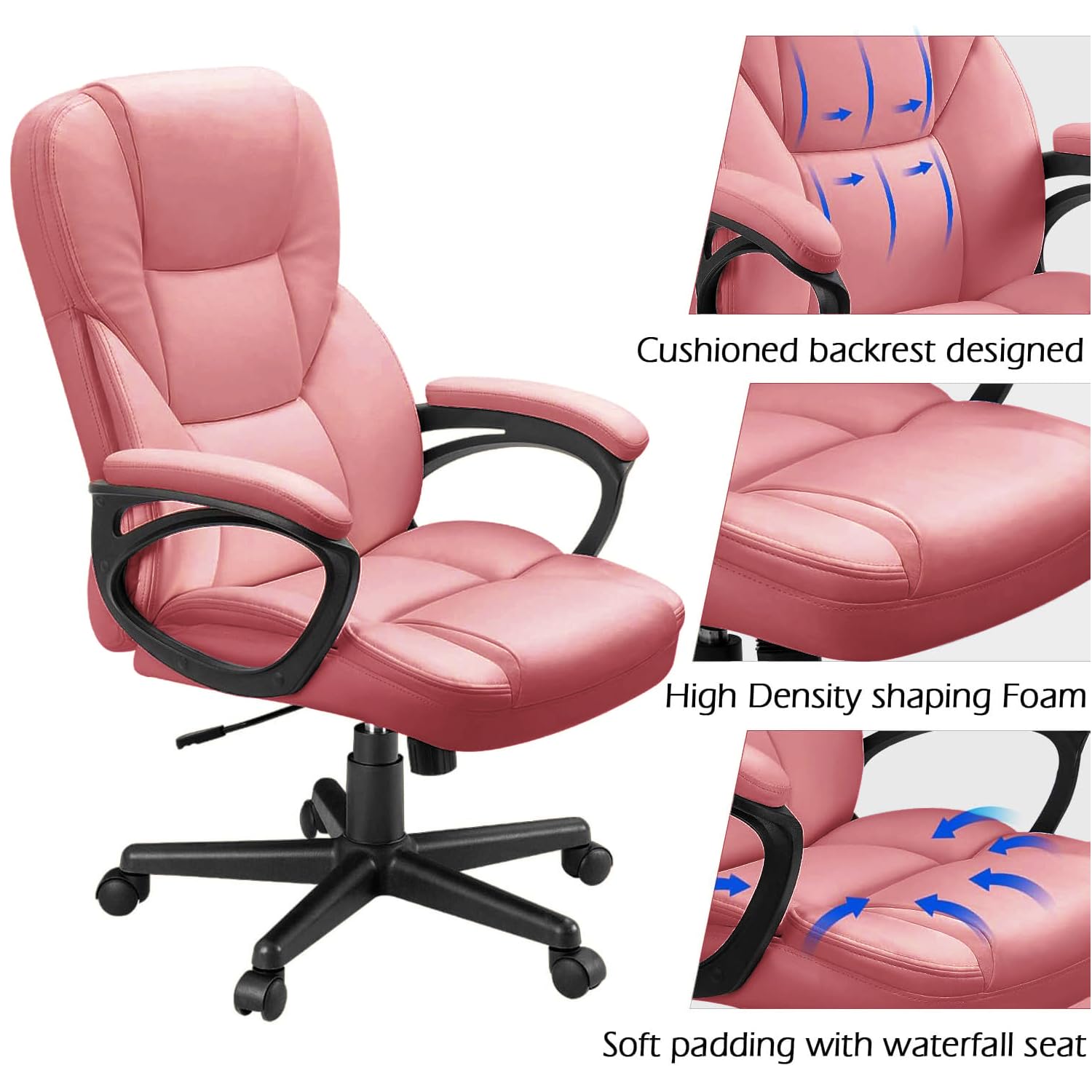 Comfortable High back office chair with cushioned back and seat upholstered provide extra support,large thick pad, soft texture slow down the pressure of the sedentary