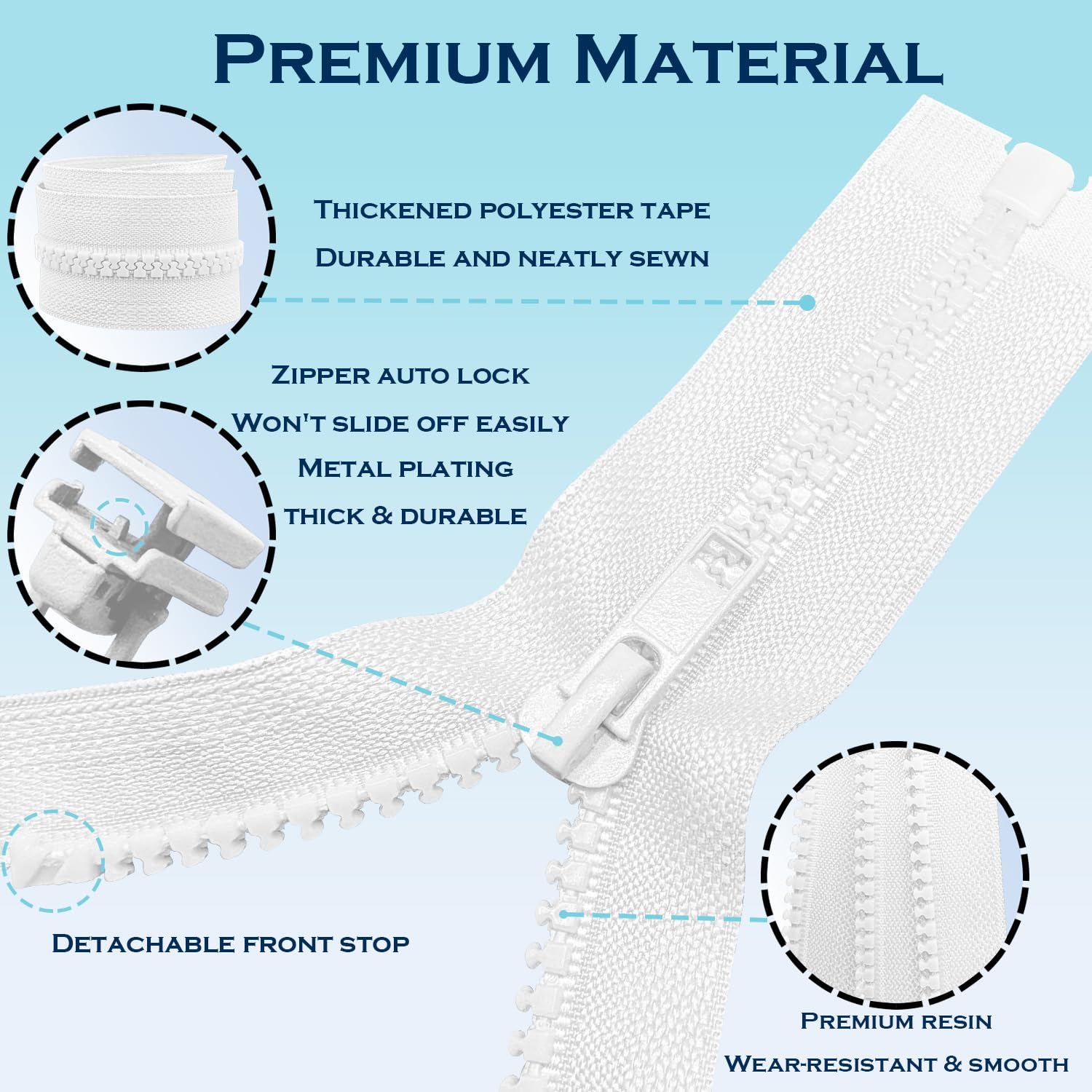 【Size】The Product Contains 3PCS White Zippers, With A Length Of 12 Inches And A Left Hand Zipper. 12 inch from bottom to top (teeth length), the full length is 13 inch end to end.