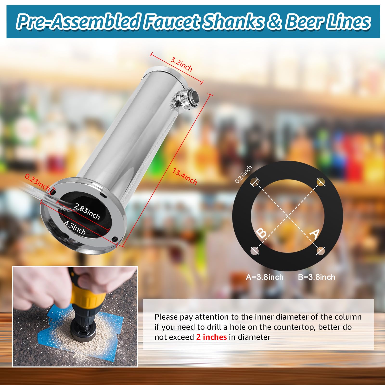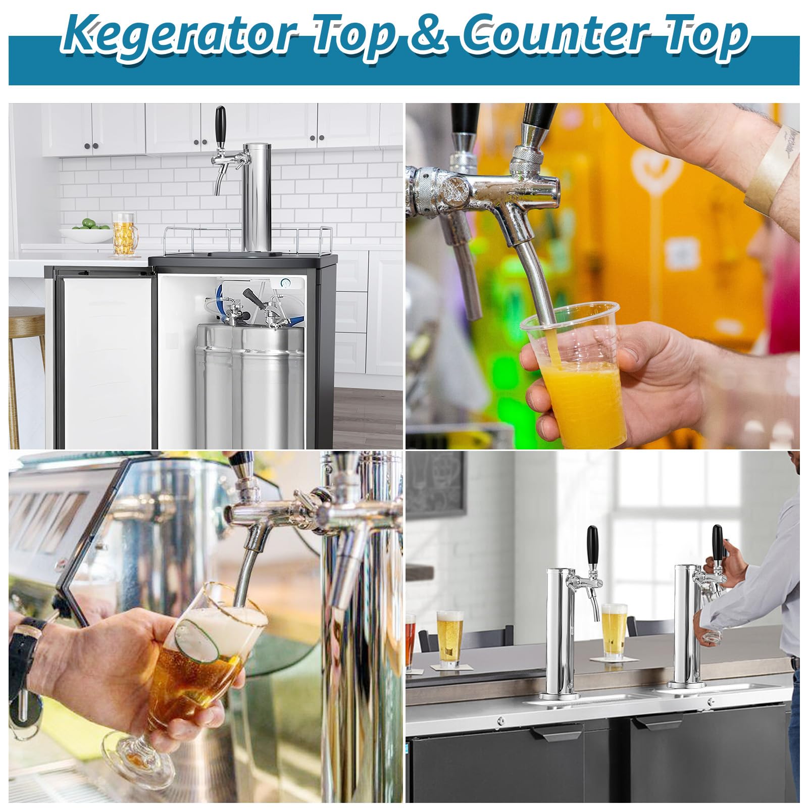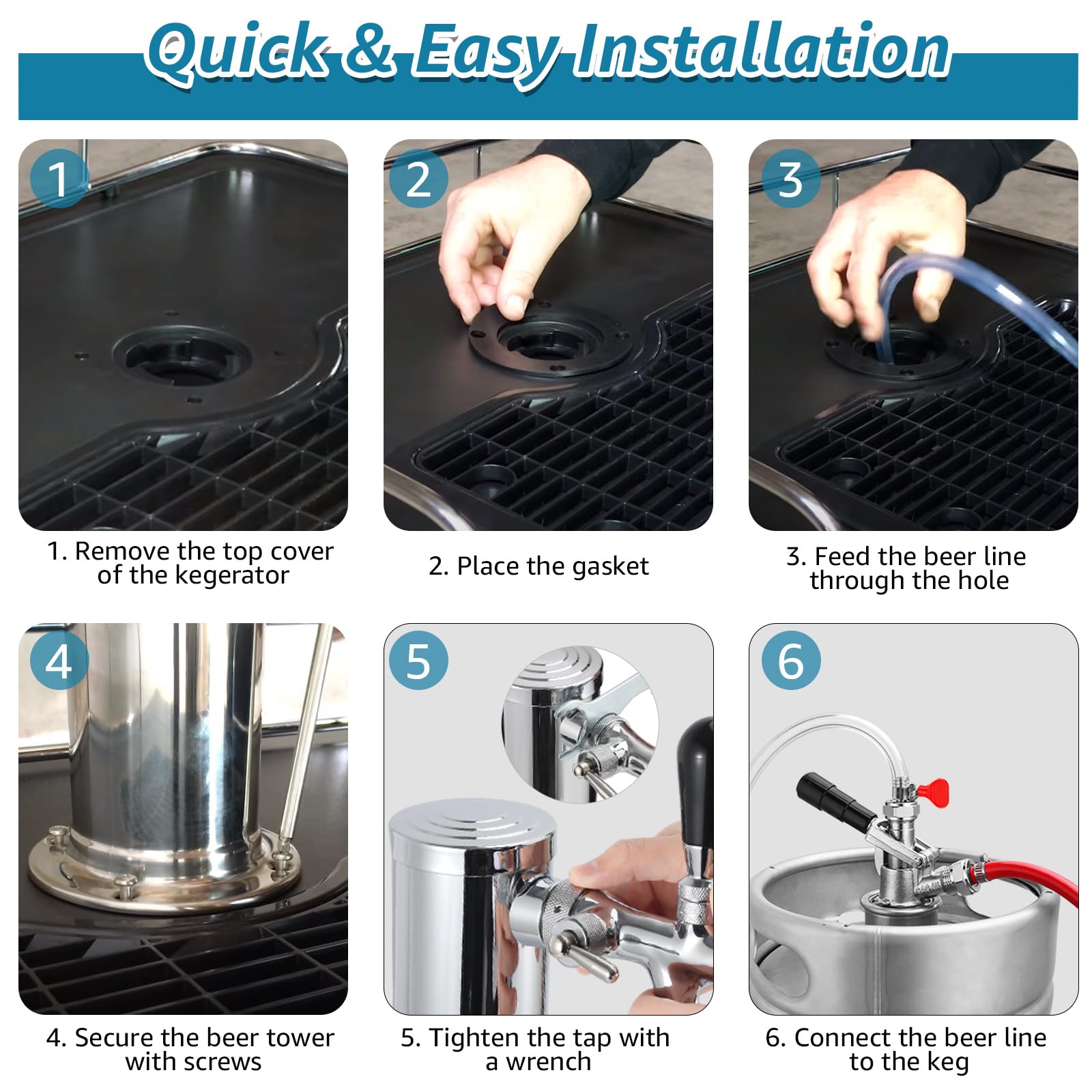 EASY INSTALLATION: The kegerator tower kit inside beer faucet shanks and beer line are pre-assembled, and all installation accessories are included, allowing for quick setup within minutes. It can be installed on a kegerator (no drilling required) or a countertop (drilling required), providing convenient use