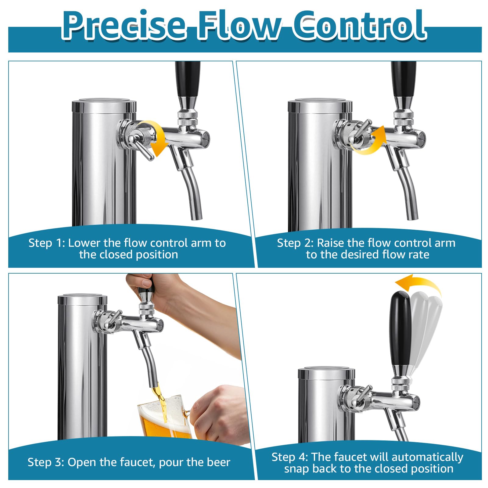 AUTOMATIC SHUT-OFF DESIGN: The faucet features a built-in spring, automatically returning to the closed position after use to prevent spills and reduce cleaning time. This beer tap is ideal for home parties, bars, restaurants, and gatherings, ensuring accurate pours every time