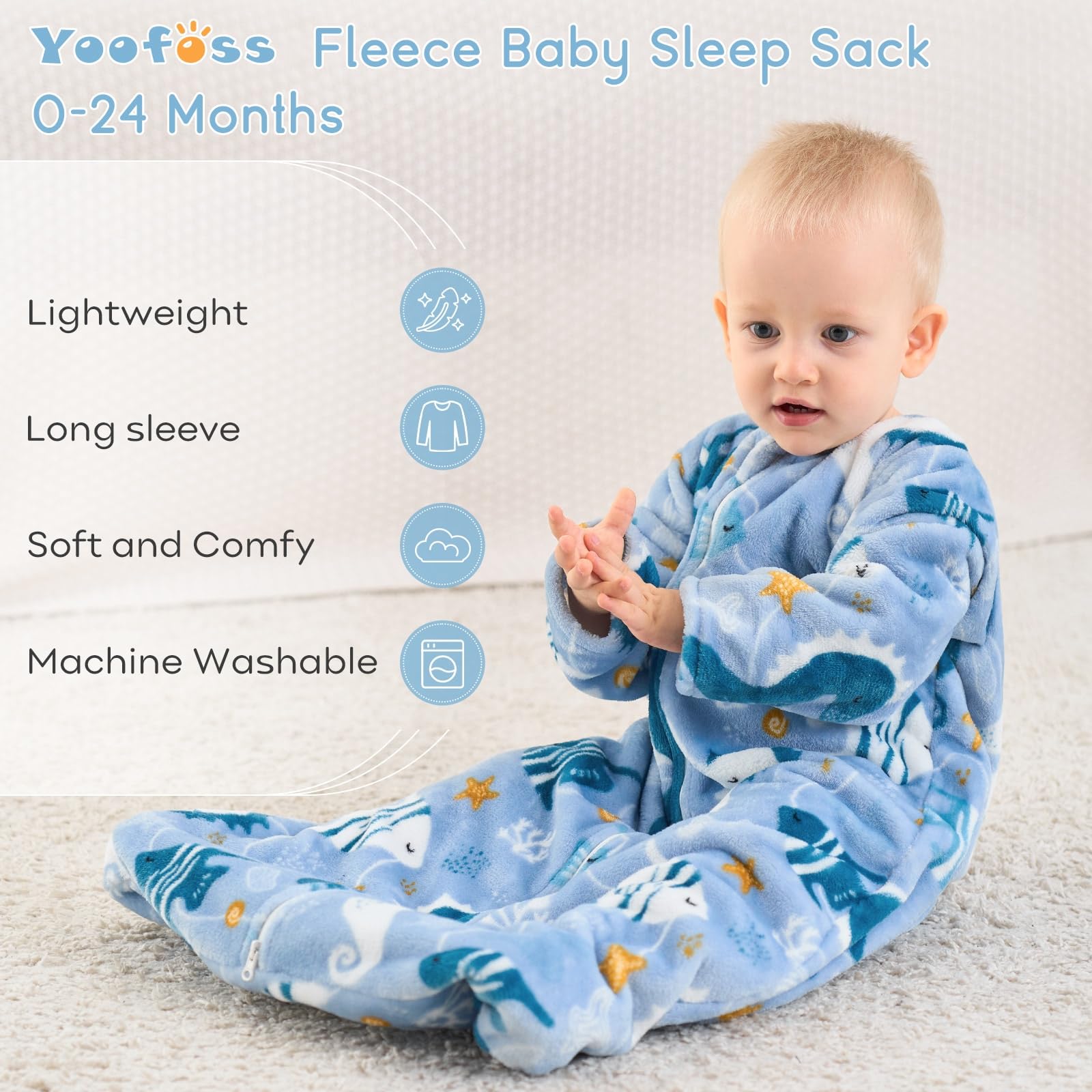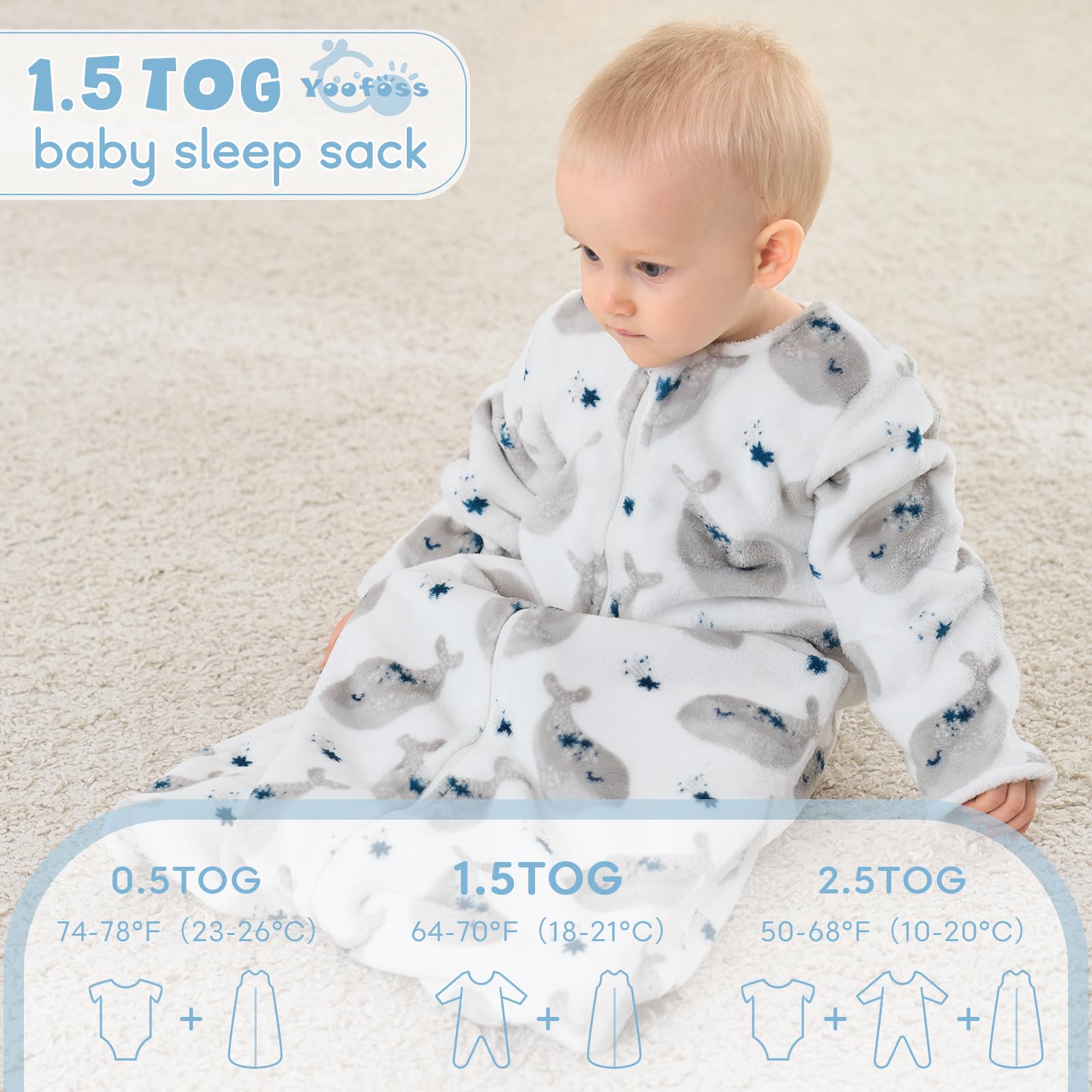 Yoofoss baby sleep sacks made of fleece,soft and smooth, create warmth and cozy embrace for baby. Fleece sleep sack 1.5 Tog is suiable for moderate temperatures from 69 to 73°F as an ideal option for autumn, early winter and spring or taking a nap in air-conditioned rooms during the summer.