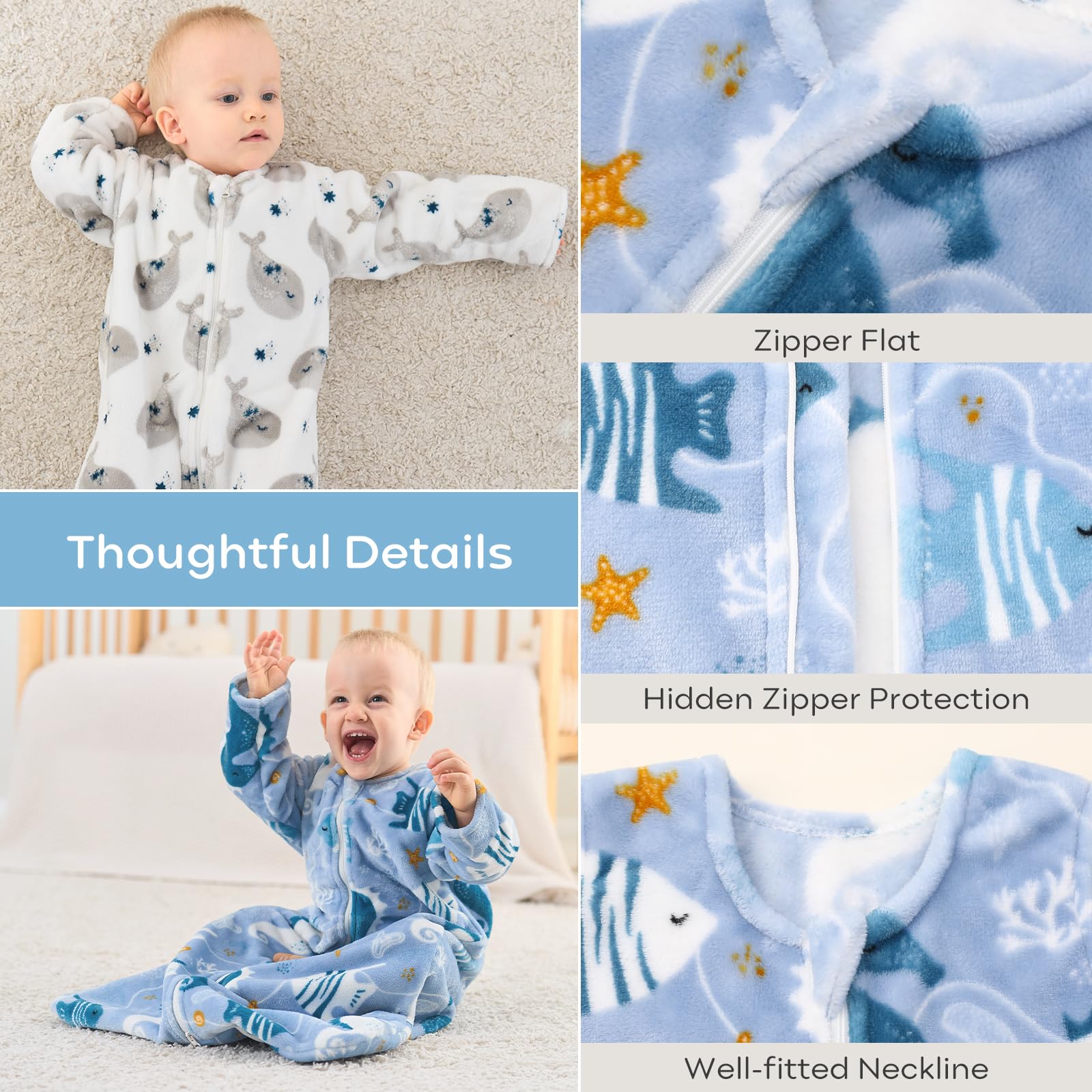 Healthy Development - 8Mm long plush can lull baby fall asleep quickly, transform fleece sleep sack into an invaluable ally for moms and soothing your precious one. Moreover, our baby sleeping bag provides enough room for kicking freely, keeping baby comfortable all night and healthy hip development.
