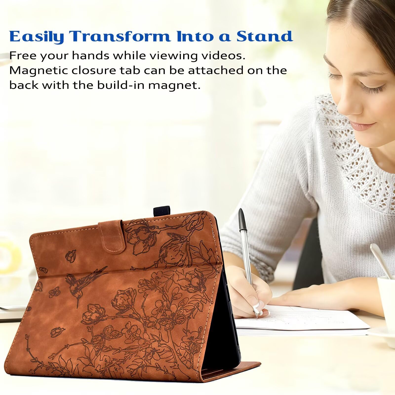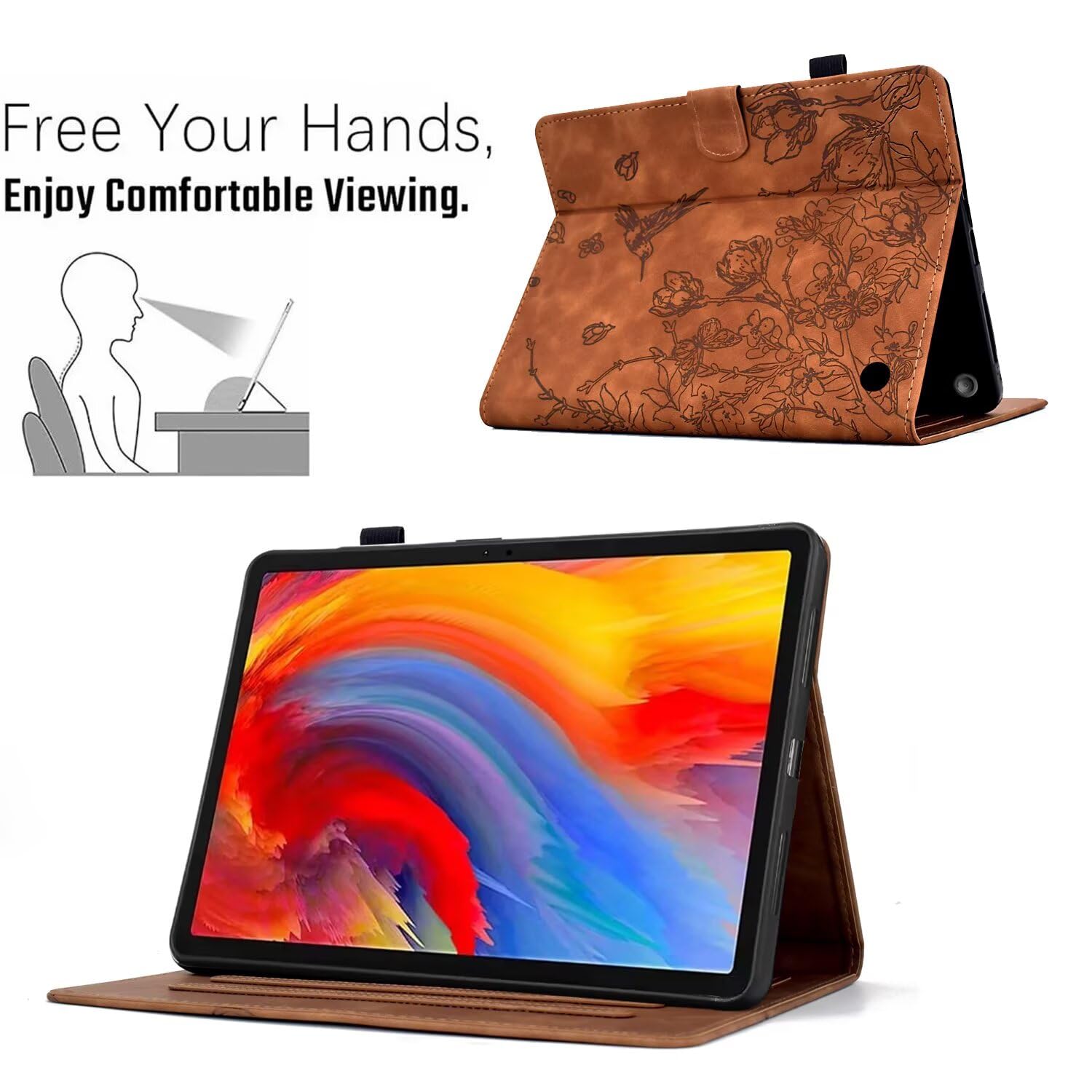 Humanized Design: The case has a built-in stand and two anti-skid strips for allowing the tablet to be propped up in a horizontal position, enabling hands-free viewing for watching videos, reading, or video chatting. The stand design may offer multiple angles for optimal viewing comfort