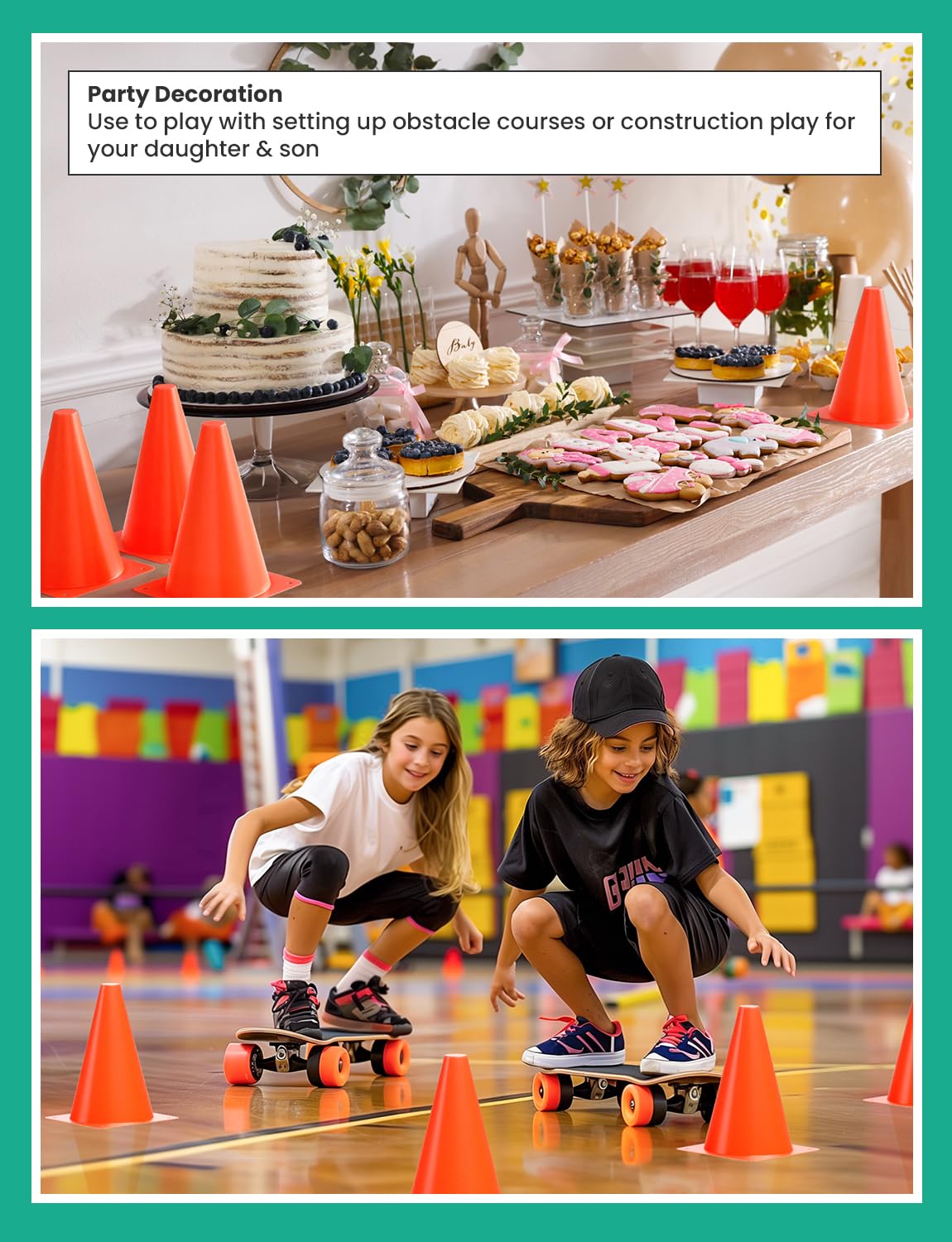 Multipurpose Mini Traffic Cones : The football cones set are perfect for a variety of indoor and outdoor training and activities,such as soccer, basketball, rugby, baseball,games at theme parties and festivals,kid's games,roller skating, agility training, bicycle obstacle course, motorcycle training, dog training and more.Ideal choice for marking boundaries, setting up obstacles and decorations