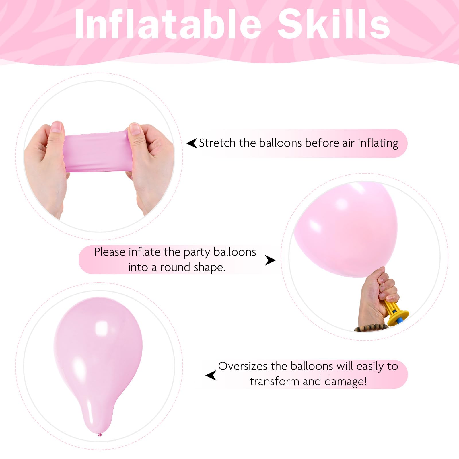 Easy to Use : These pastel pink blue balloon set can be easily inflated with air or helium; Blow them up with a mouth, pump or helium; If you want them to float, make sure to fill them with helium