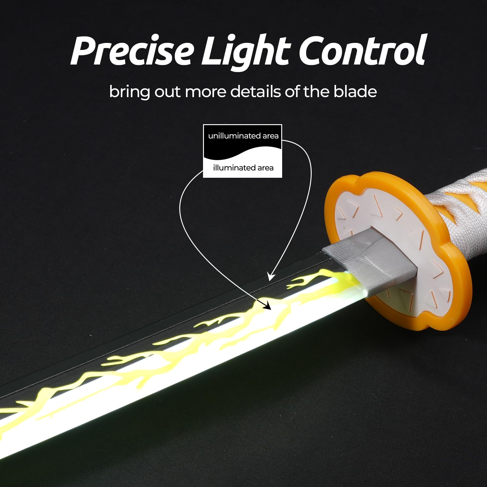[Rechargeable and Convenient] The light-up sword is equipped with a built-in rechargeable battery that provides up to 90 minutes of continuous illumination on a full charge, which takes approximately 20 minutes. Simply touch the charging port on the handle once to easily turn the light on or off.