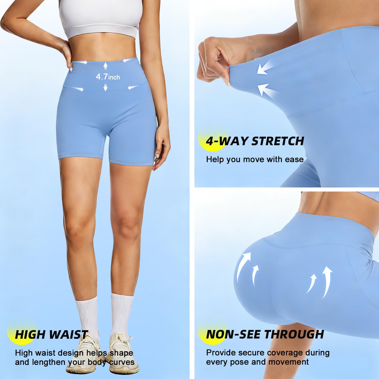 ▲4 WAYS STRETCH & NON-SEE-THROUGH - This workout spandex shorts for women is made of 4 way stretch and non see through fabric, which provides maximum comfort and protection during your every pose and movement, allows for maximum comfort and wear ability