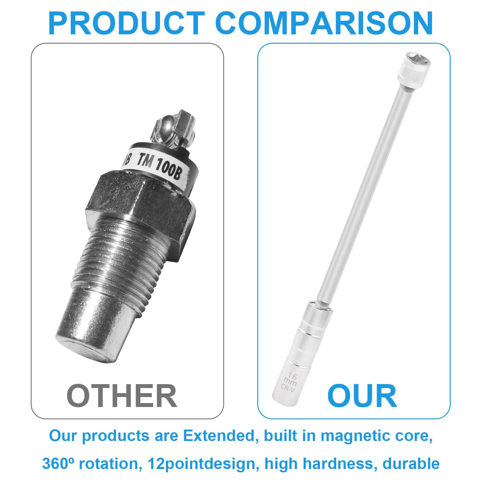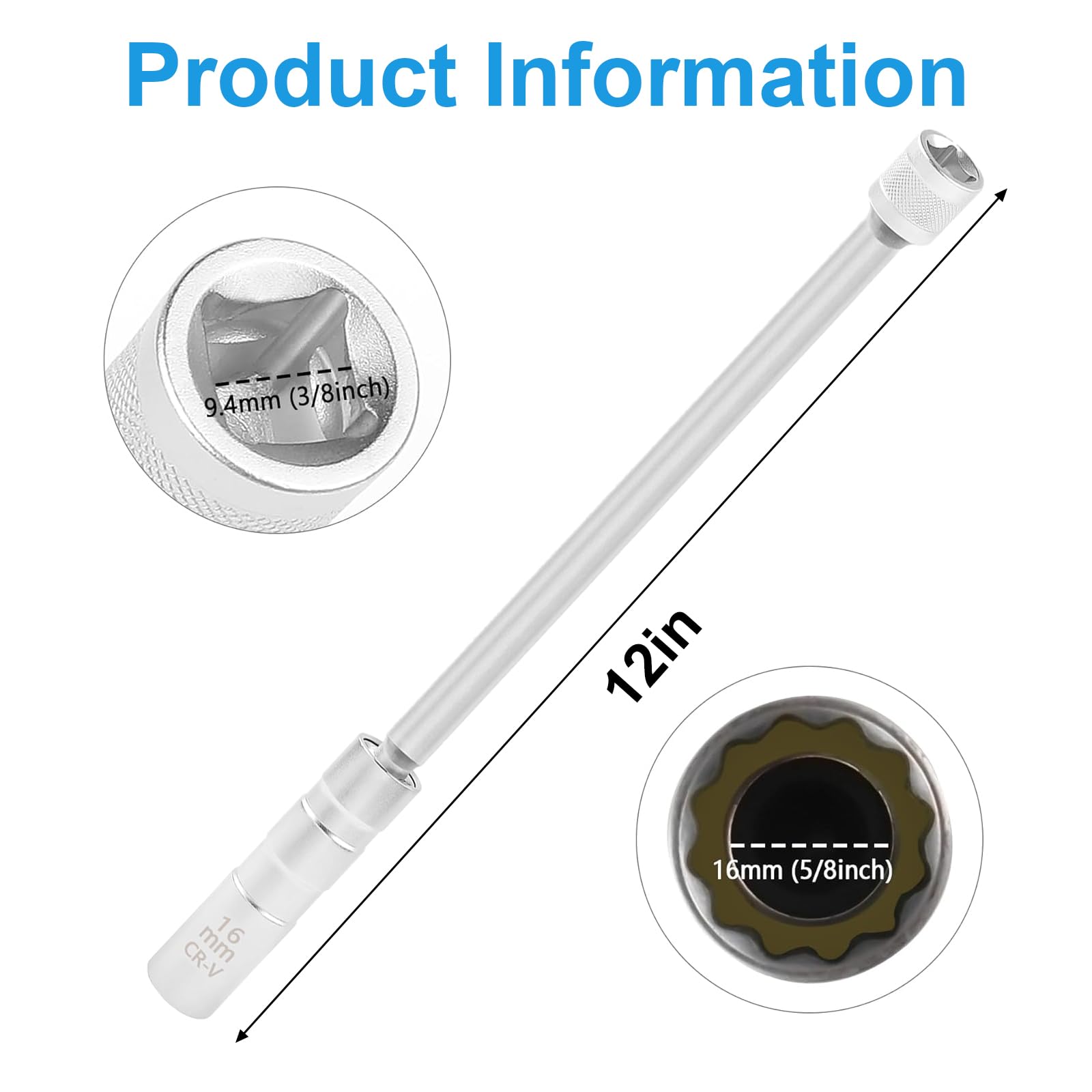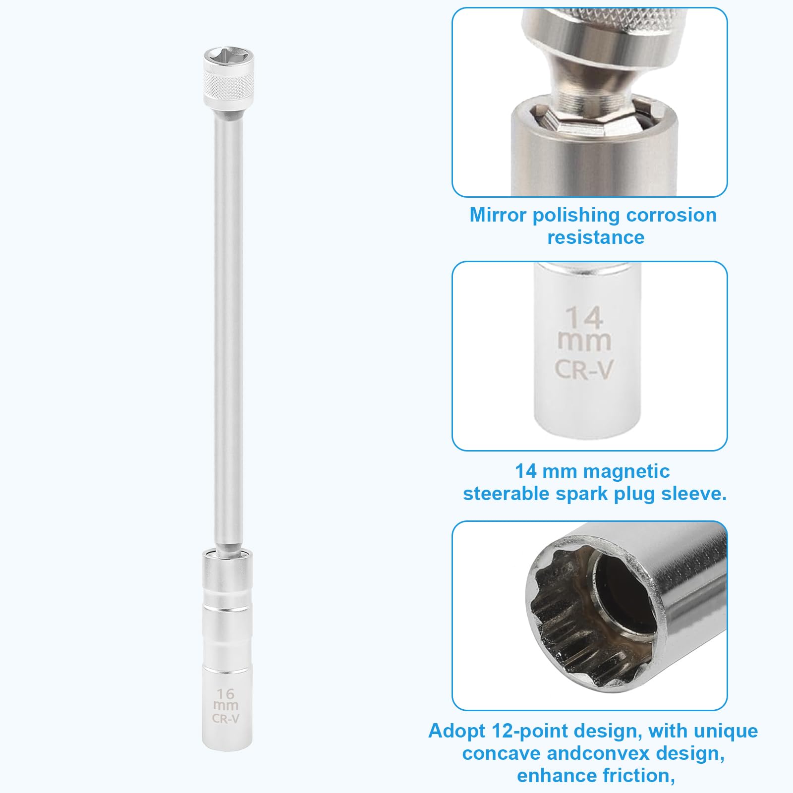 Specifications: 3/8" driver 14mm&16mm magnetic rotating spark plug Socket seat adopts 12 point design. Features a unique bump design that enhances grip friction and allows Great spark plug removal tool