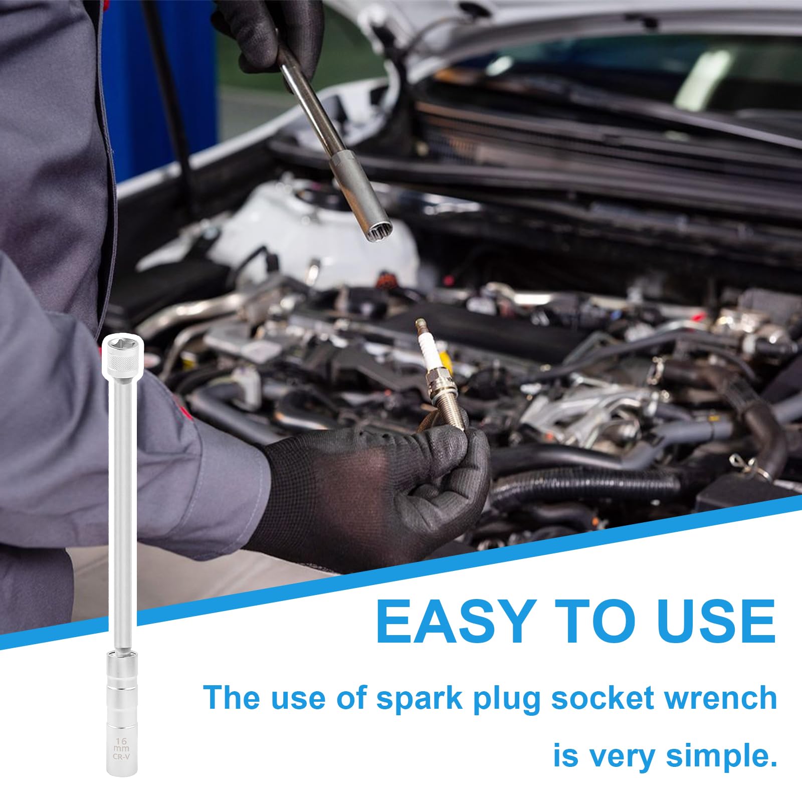 360 Degree Rotation - Ordinary spark plug sockets are prone to bursting spark plug ceramics, but with this 360 degree rotation spark plug socket, it is easier to pull out spark plugs in narrow corner areas! (Don't worry about the spark plug falling into the engine compartment)