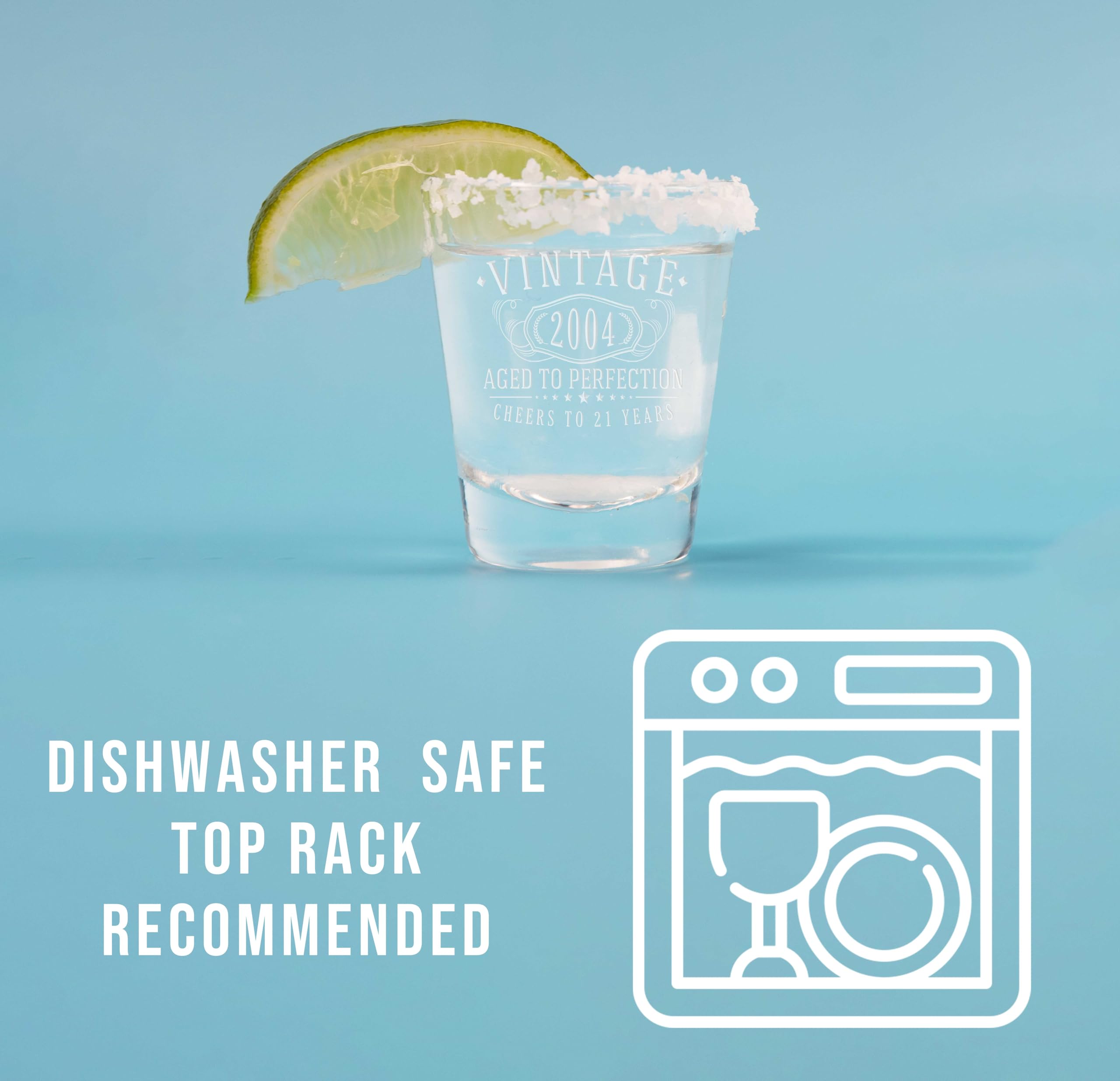 Printed design is high quality and dishwasher safe, making these easy to care for. This shot glass with the vintage design is a gift that will make any birthday more special.