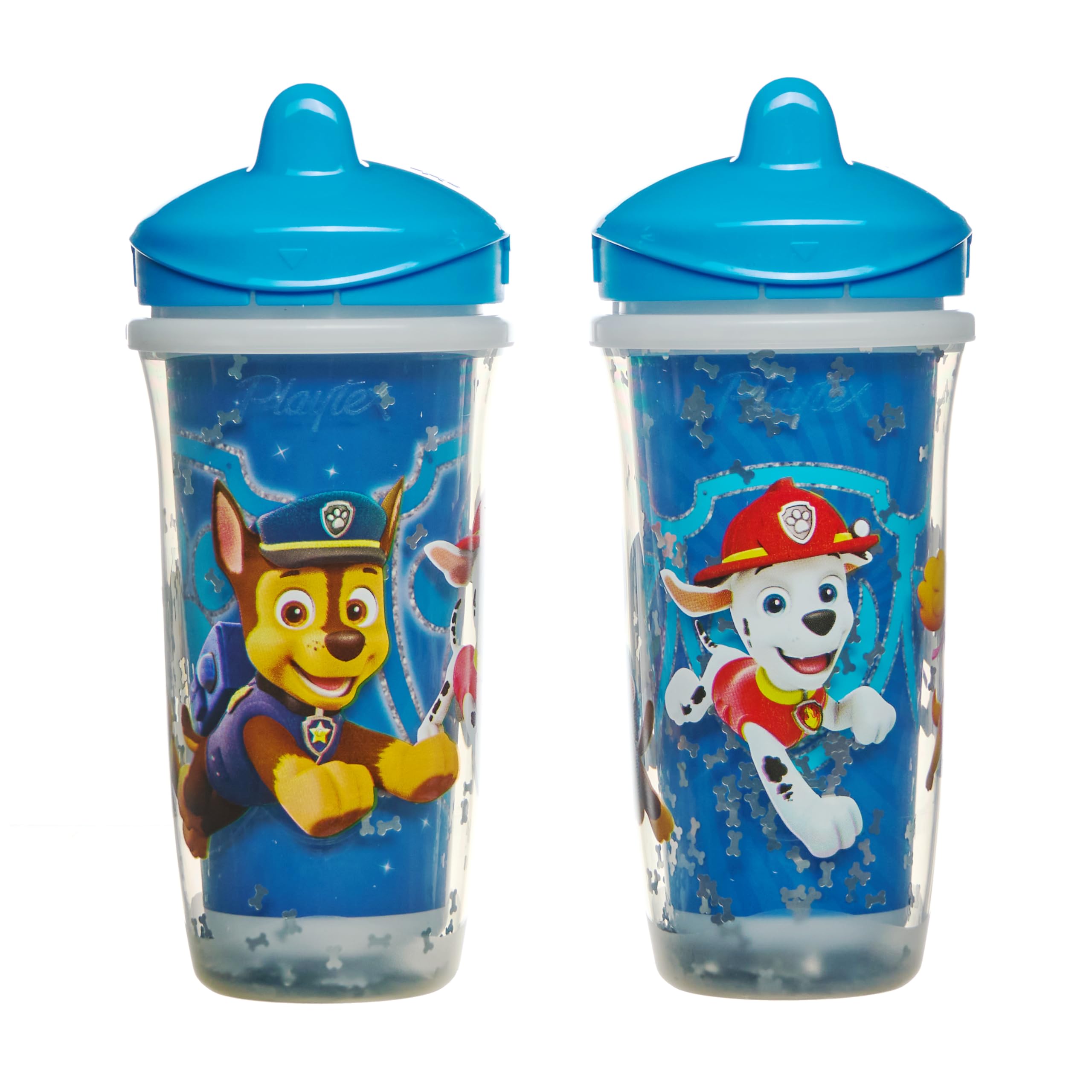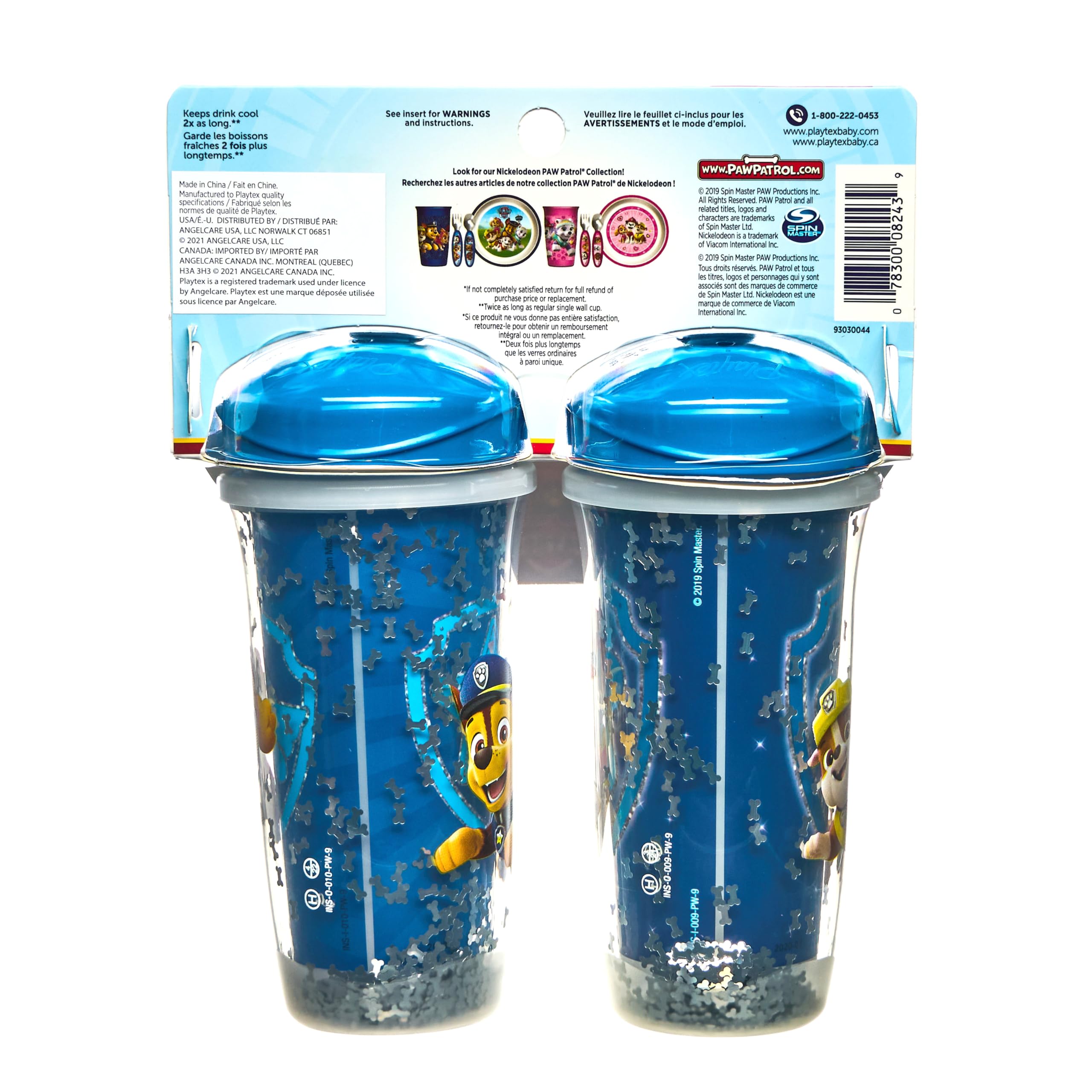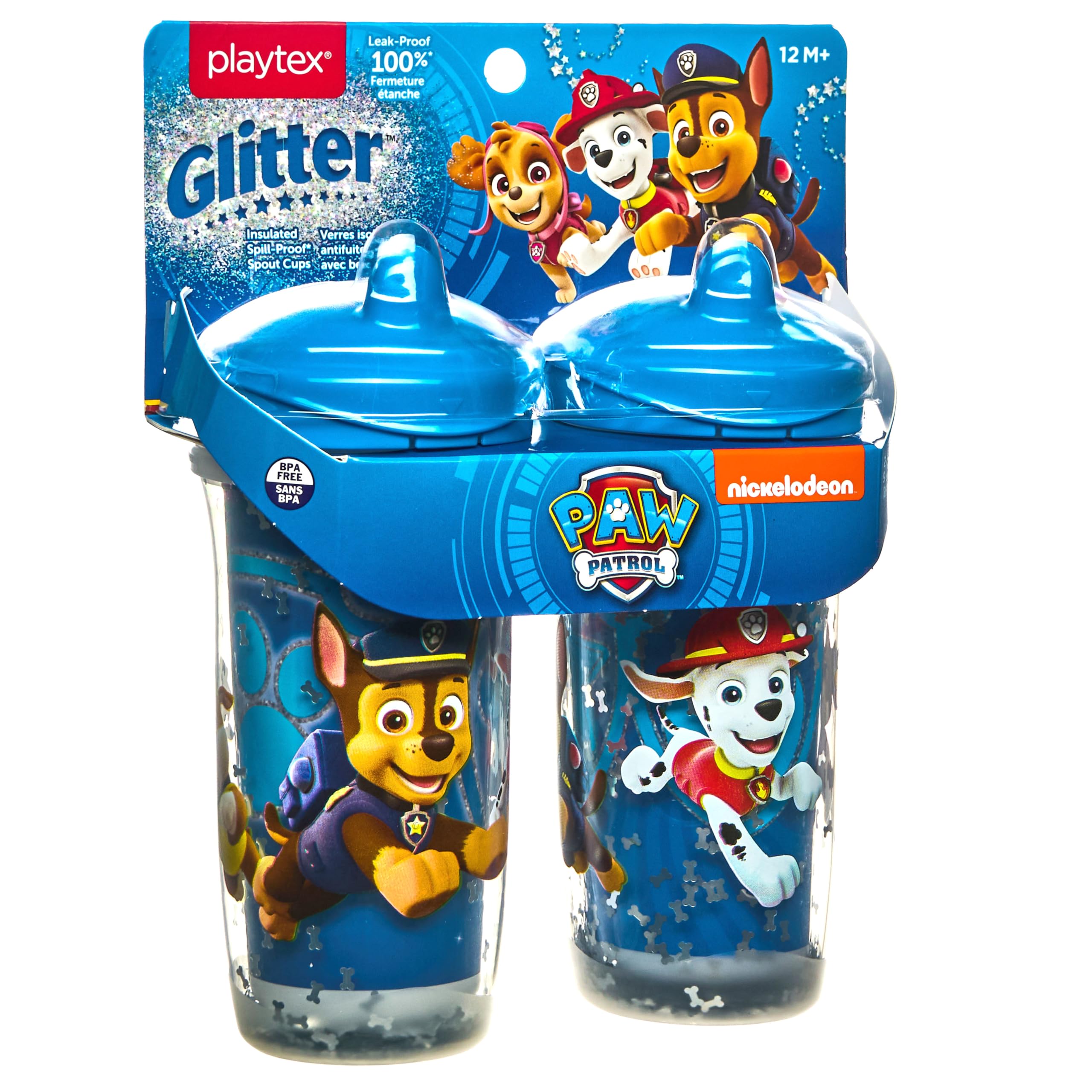 The ergonomic design of Playtex Baby Glitter Paw Patrol Stage-3, Insulated Sippy Cup makes it easy for those little hands to hold. Spill-proof valve eliminates messes and is easy to clean. Spill-proof, Break-proof, Leak-proof Guarantee BPA Free. All parts are top rack dishwasher safe, or can be hand washed. If not completely satisfied, return for full refund of purchase price or replacement, Twice as long as regular single wall cups. Playtex Sipsters Paw Patrol Stage 3 Glitter Insulated Spout Cup, 9 Oz.