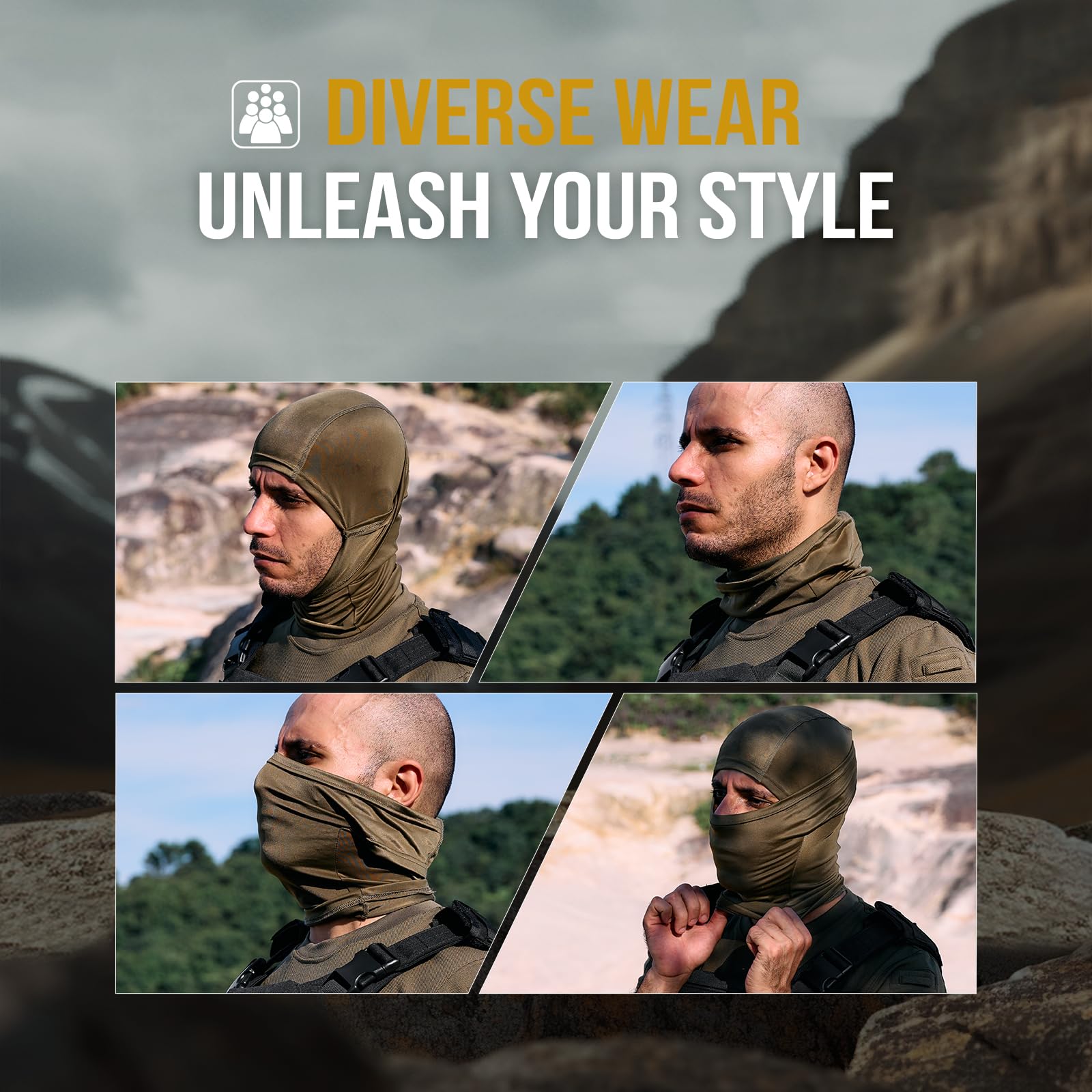 Can be worn underneath hats, helmets, paintball masks, etc., you can use it as full/half face mask, open balaclava, scarf, neck gaiter, sahariene style or headband as you like