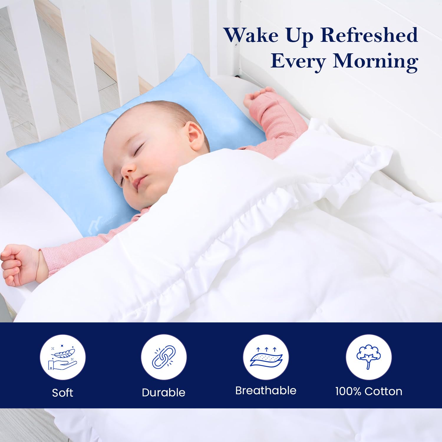 PILLOW CASES 2 PACK: Toddler Pillow cases includes 2 pillow cases 14 x 20 Inch. Sleeping better Your Toddler and wake up each morning feeling refreshed. Soft, comfortable and luxurious pillow cases you can find. Discover the ultimate in high-end with our Cotton-smooth Pillow Case Cover. Breathable, and cool to the touch, our luxuriously soft Light Blue Pillow cases will create a heavenly sleeping experience.