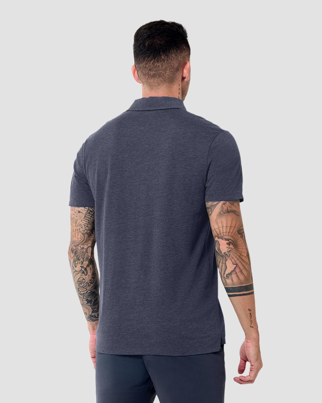 INTO THE AM Essential Polo Shirts for Men - Modern Fit Collared Shirt Men Fitted Short Sleeve Classic Golf Collar Shirts (Navy, X-Large)