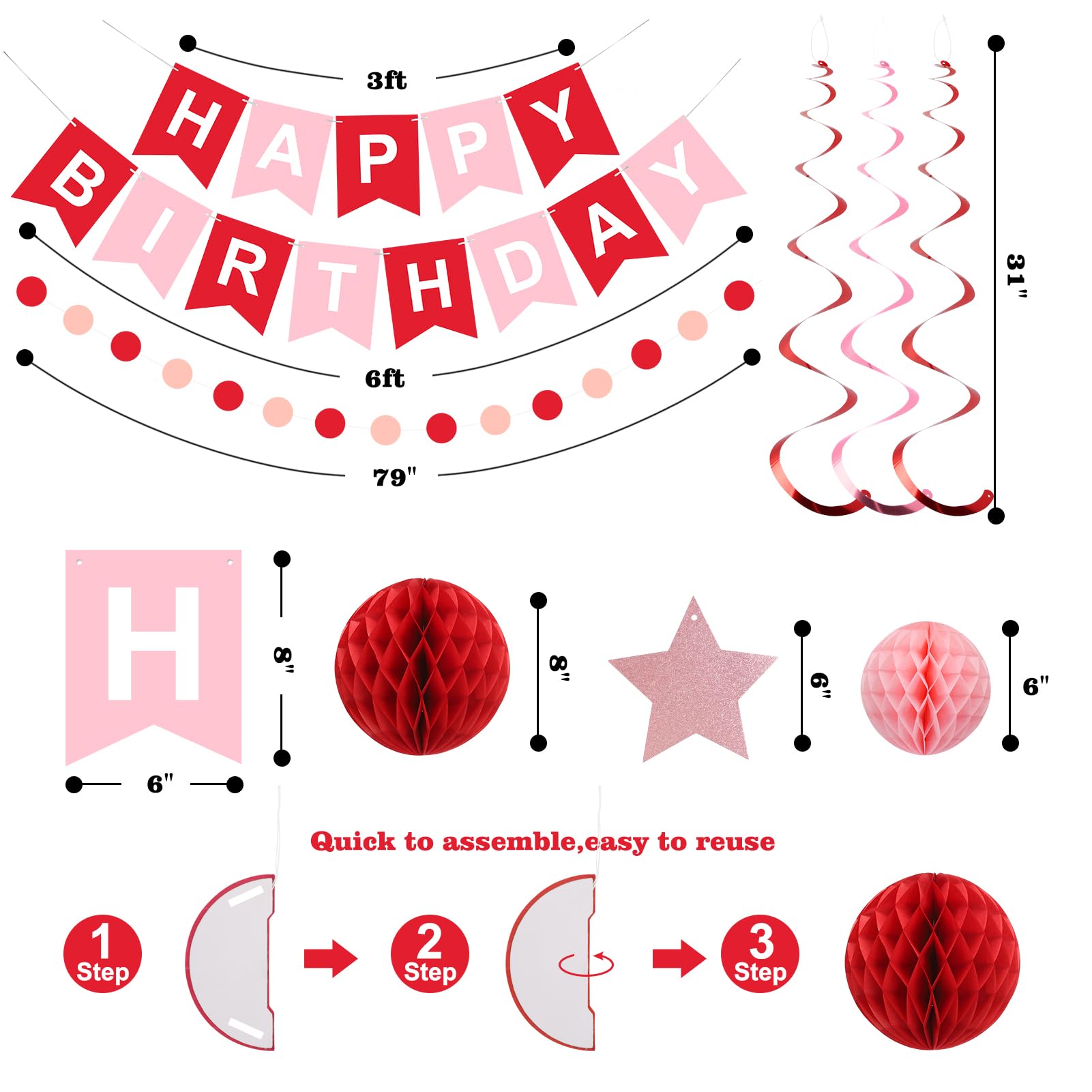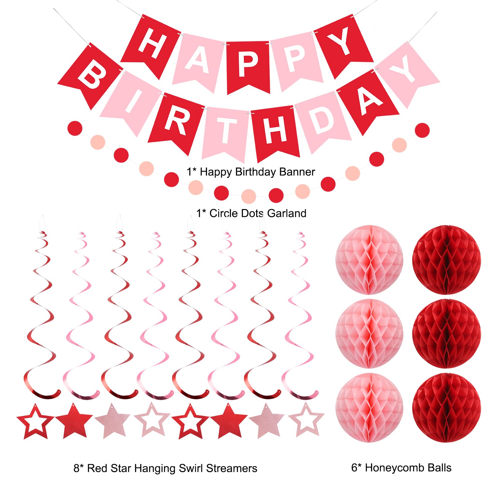 Package Including: With our Birthday Party Decorations package, you'll have everything you need to create the perfect party atmosphere. You can get 1pcs Happy Birthday Banner, 12pcs Honeycomb Balls, 16pcs Stars Swirls Streamers, and 1pcs Circle Dots Decorations. No need to worry about running around and finding individual items. It's convenient package.