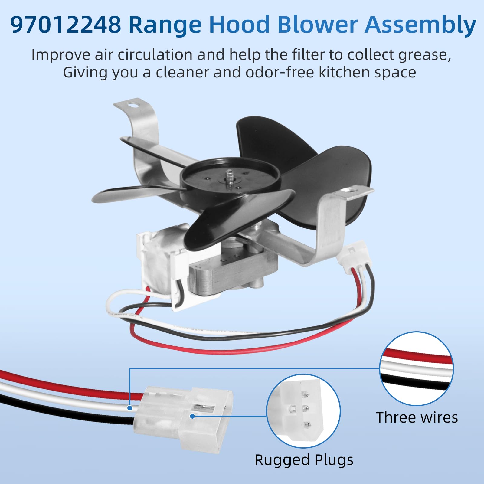 ใ๐ฆ๐๐ฝ๐ฒ๐ฟ๐ถ๐ผ๐ฟ ๐ค๐๐ฎ๐น๐ถ๐๐ใ97012248 range hood exhaust fan motor assembly is made of durable metal and ABS materials. The high-quality metal motor continuously powers the fan to maintain air circulation in the kitchen. The sturdy ABS material is more durable and heat-resistant, and will not crack or melt during use. 97012248 fan motor assembly works hard to help remove smoke and odors from your kitchen
