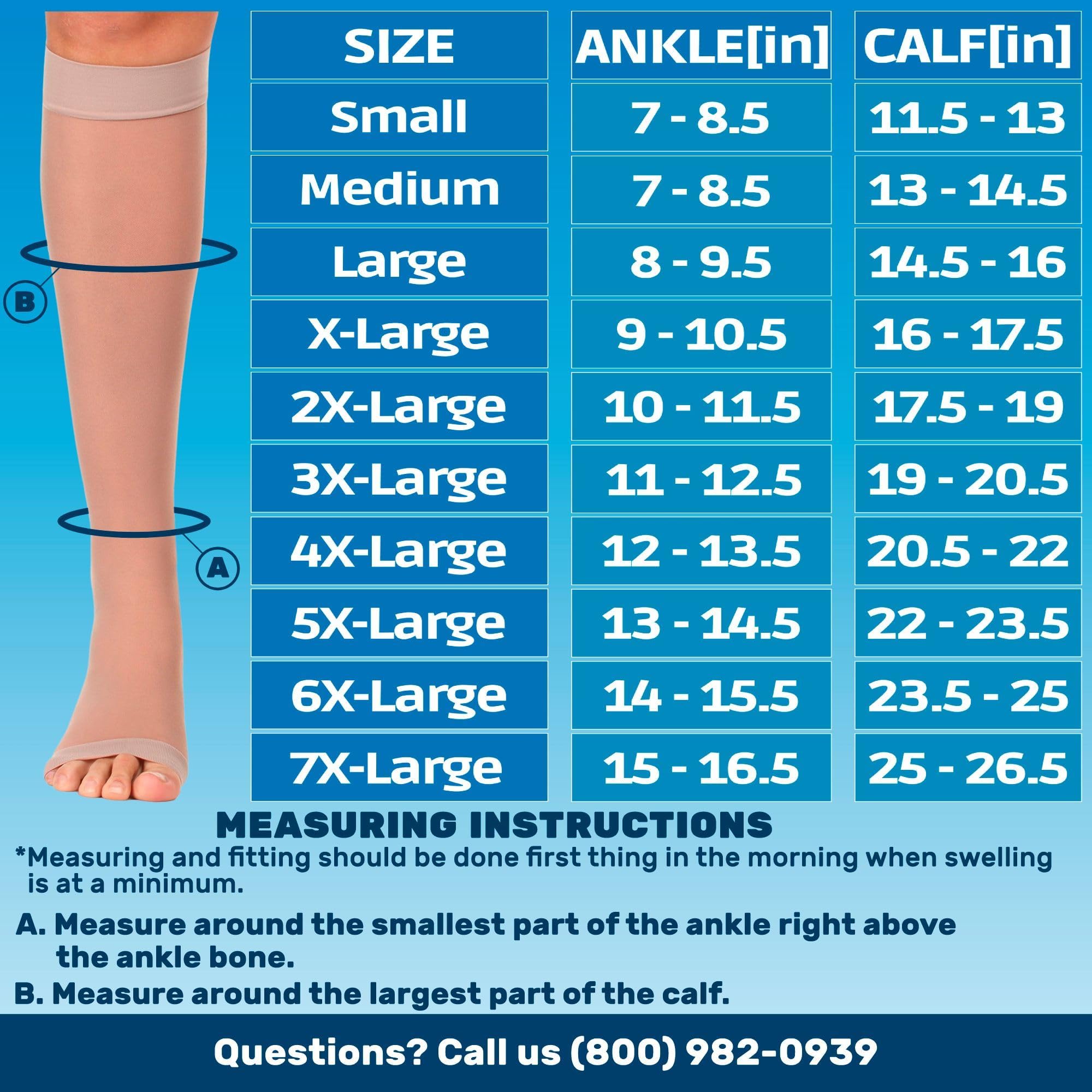 DETAILED SIZE CHART - Find your perfect fit with our comprehensive size chart, factoring in both calf and ankle sizes.