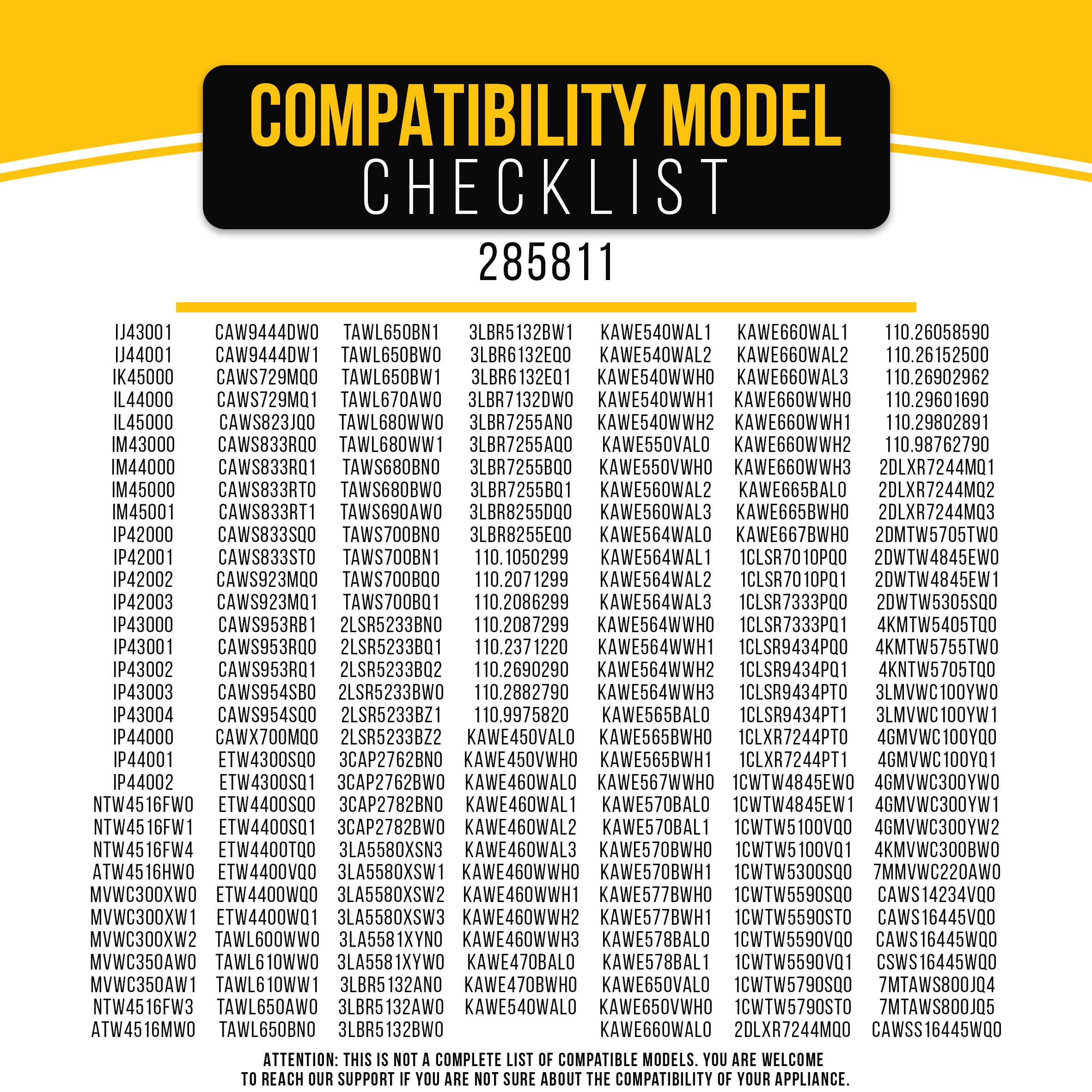 The Washer Agitator 285811 is compatible with 285811 Whirlpool and also compatitable with Kenmore, Roper, & Estate 285811 washers, making it a valuable replacement part for consistently clean and well-maintained laundry.