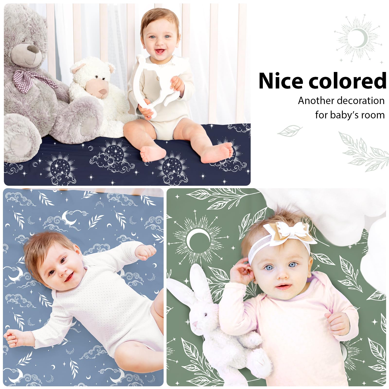 Nursery Essentials: Choose from a variety of stylish mini crib mattress sheets, featuring cute prints and bright colors to bring life to your nursery. You can create a cozy, warm, and harmonious sleep space that nurtures your child’s dreams and growth.