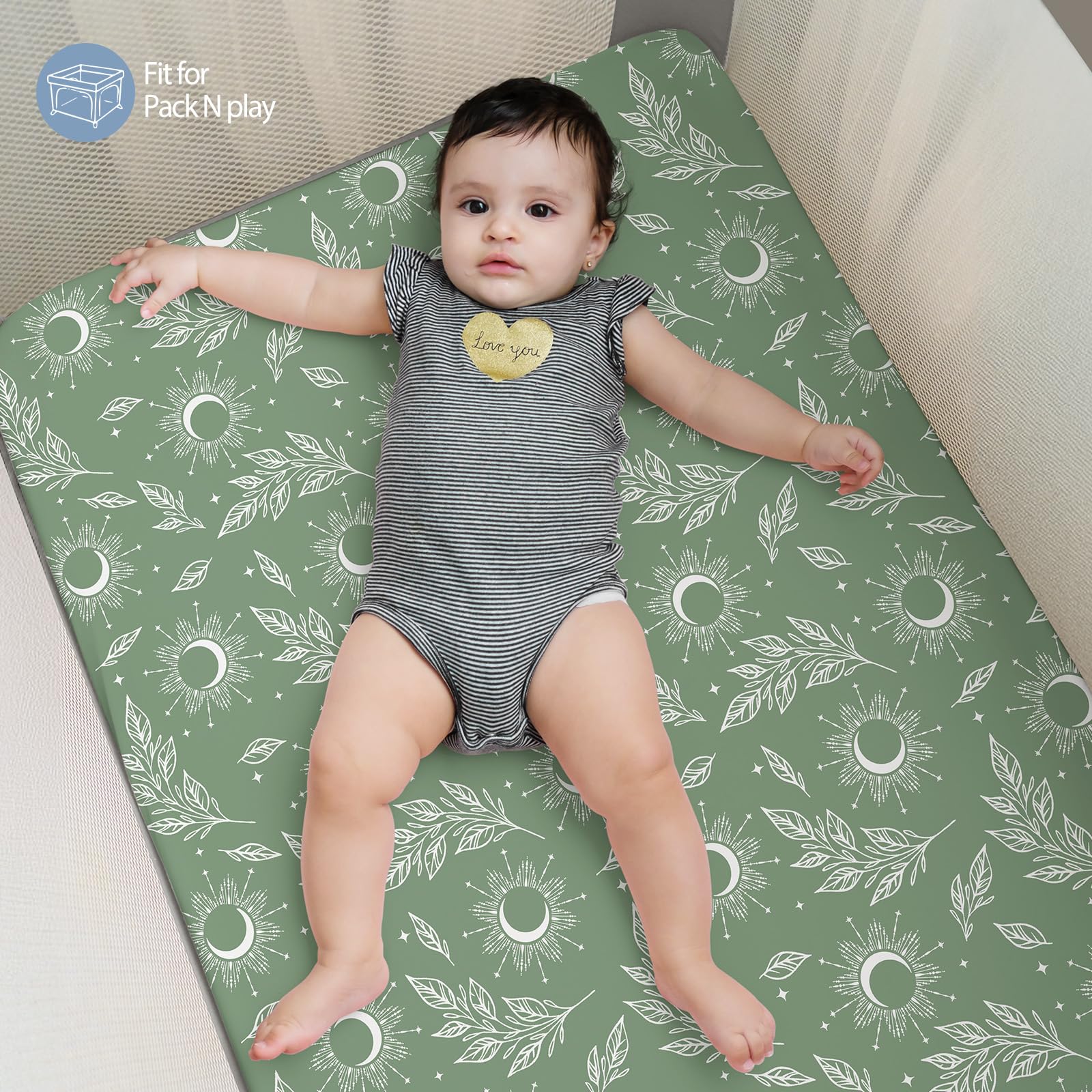 Soft & Skin-friendly Fabric: Crafted from premium microfiber with advanced knitting techniques, our pack and play mattress sheets are ultra-soft and gentle, perfect for even the most delicate and sensitive skin. Designed to keep your baby comfortable and relaxed, they promote sound sleep and support healthy growth.