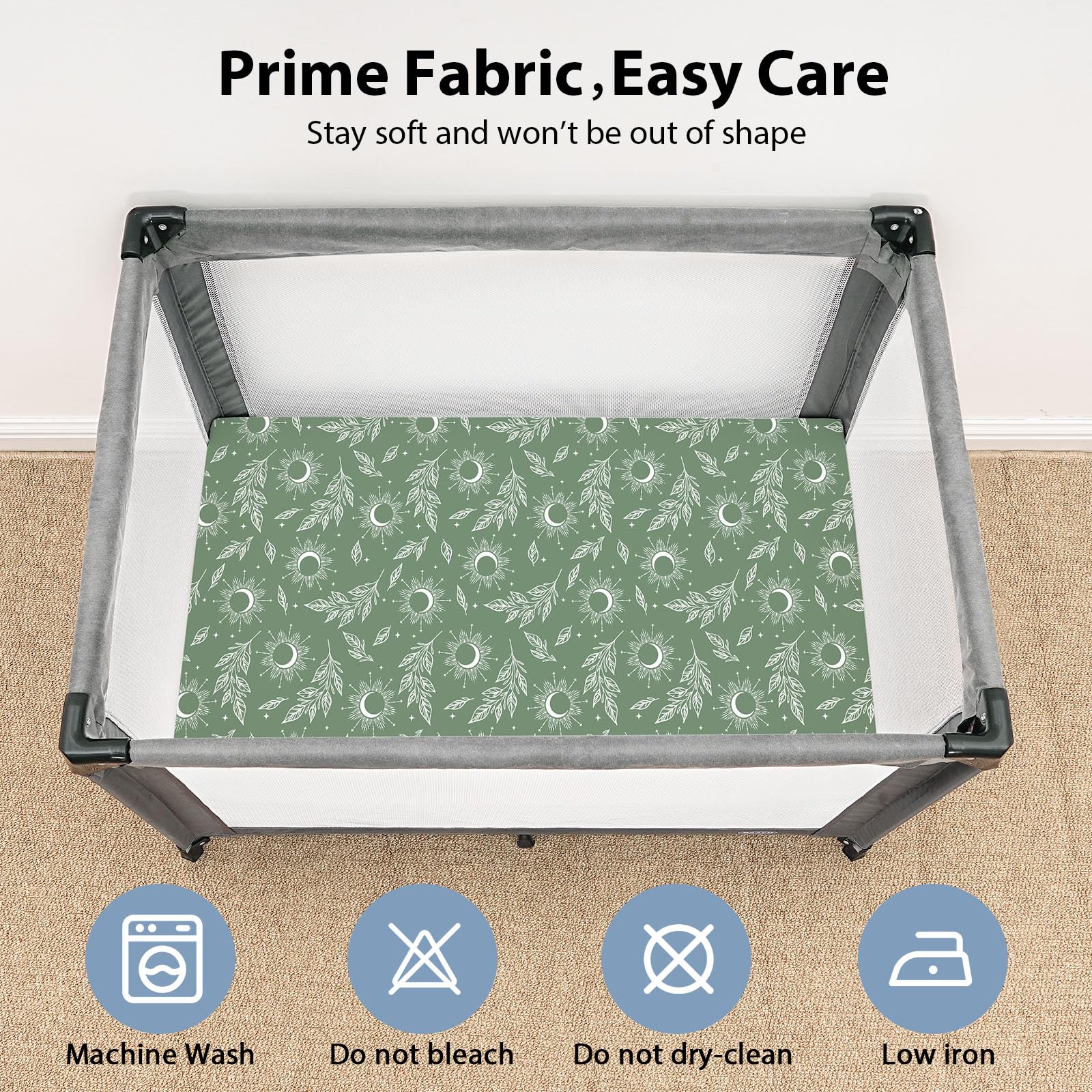 Easy Care & Sustainable: Made from pre-shrunk fabric, our pack n play sheets resist fading, pilling, and shrinking, even after hundreds of machine washes. With double-stitched edges and corners, they are built to last, ensuring comfort for your baby.