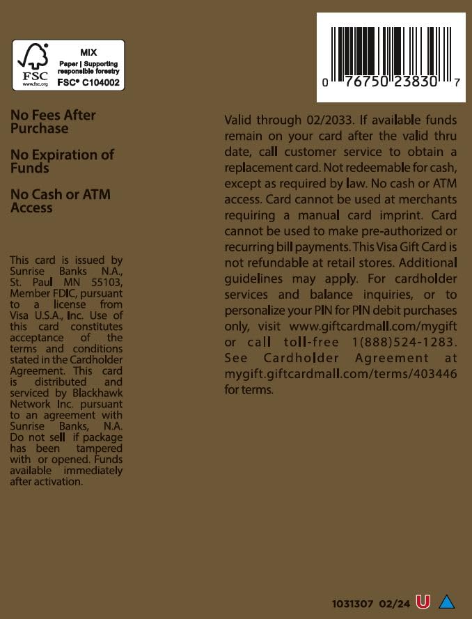This card is non-reloadable. No cash or ATM access. Cards are shipped active and ready for use. Funds do not expire. If available funds remain on your card after the valid thru date has passed, please call customer service for a replacement card. A one-time purchase fee applies at the time of checkout. No fees after purchase.