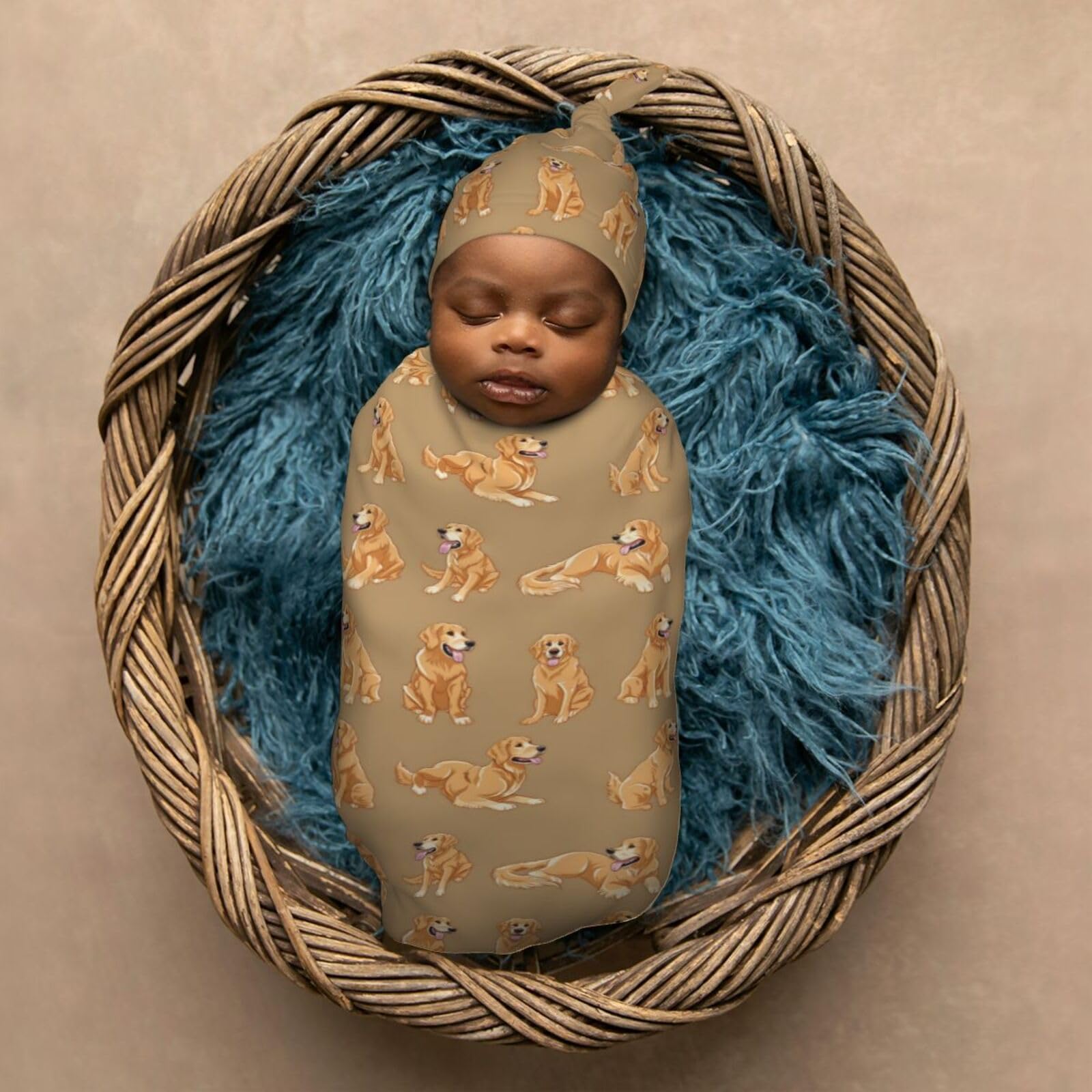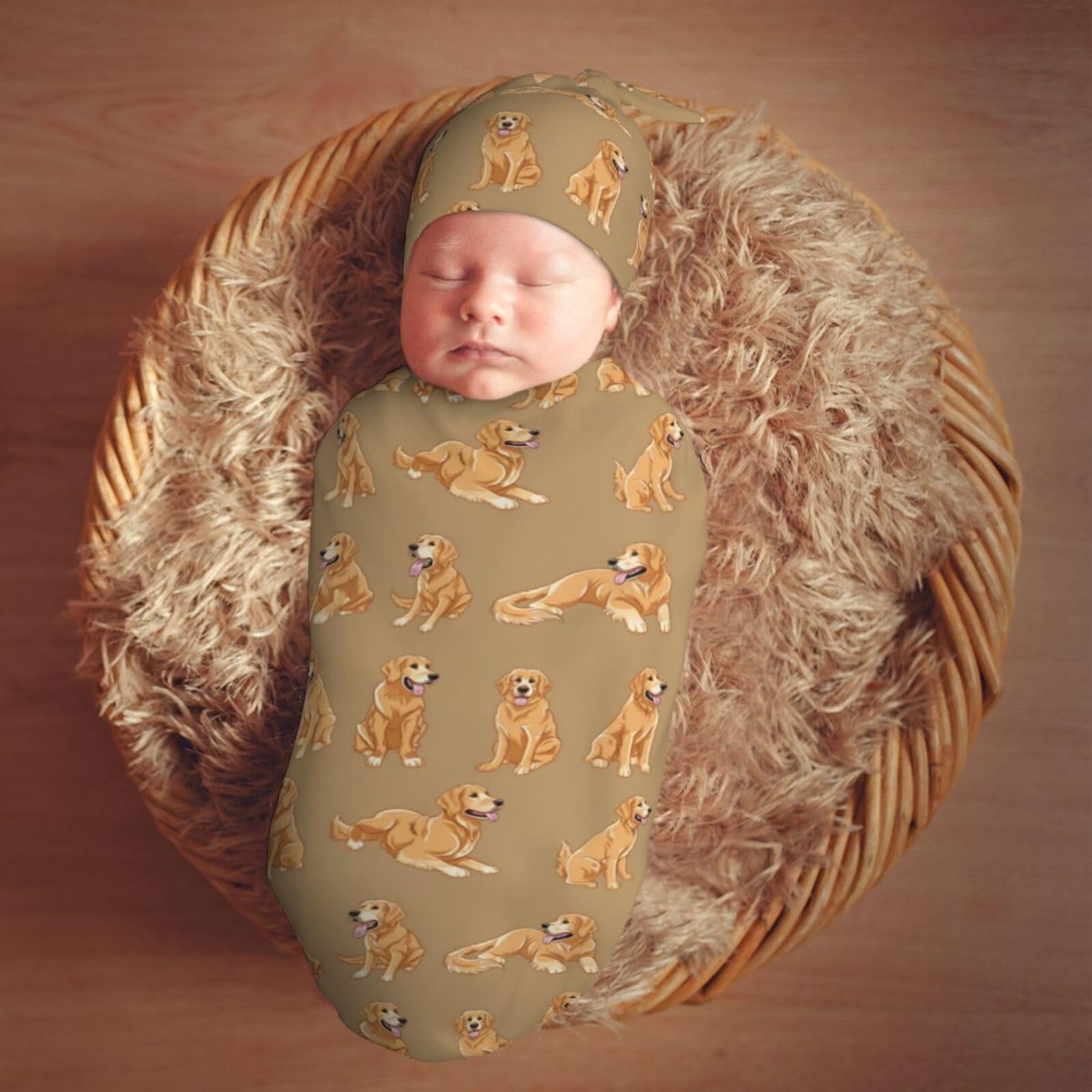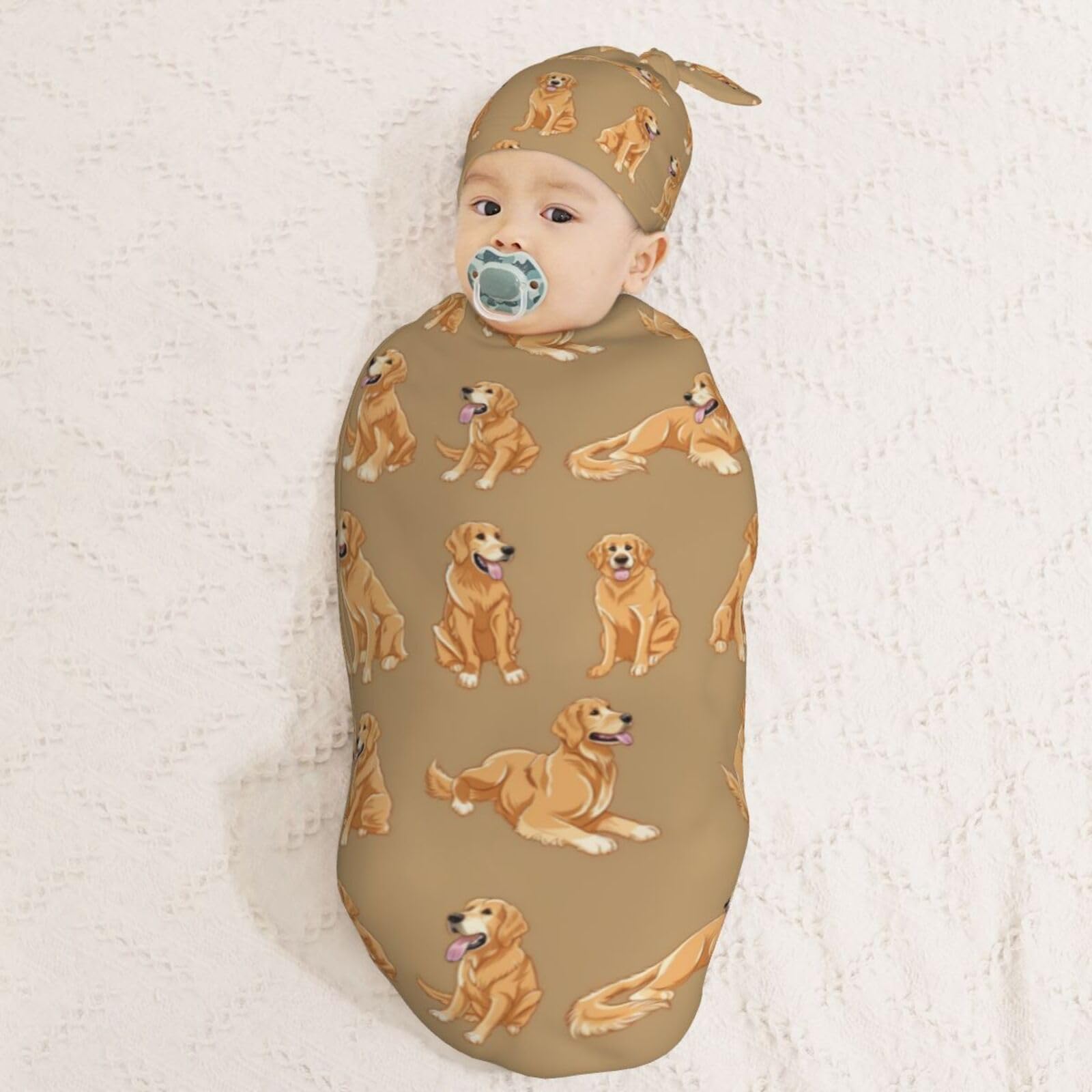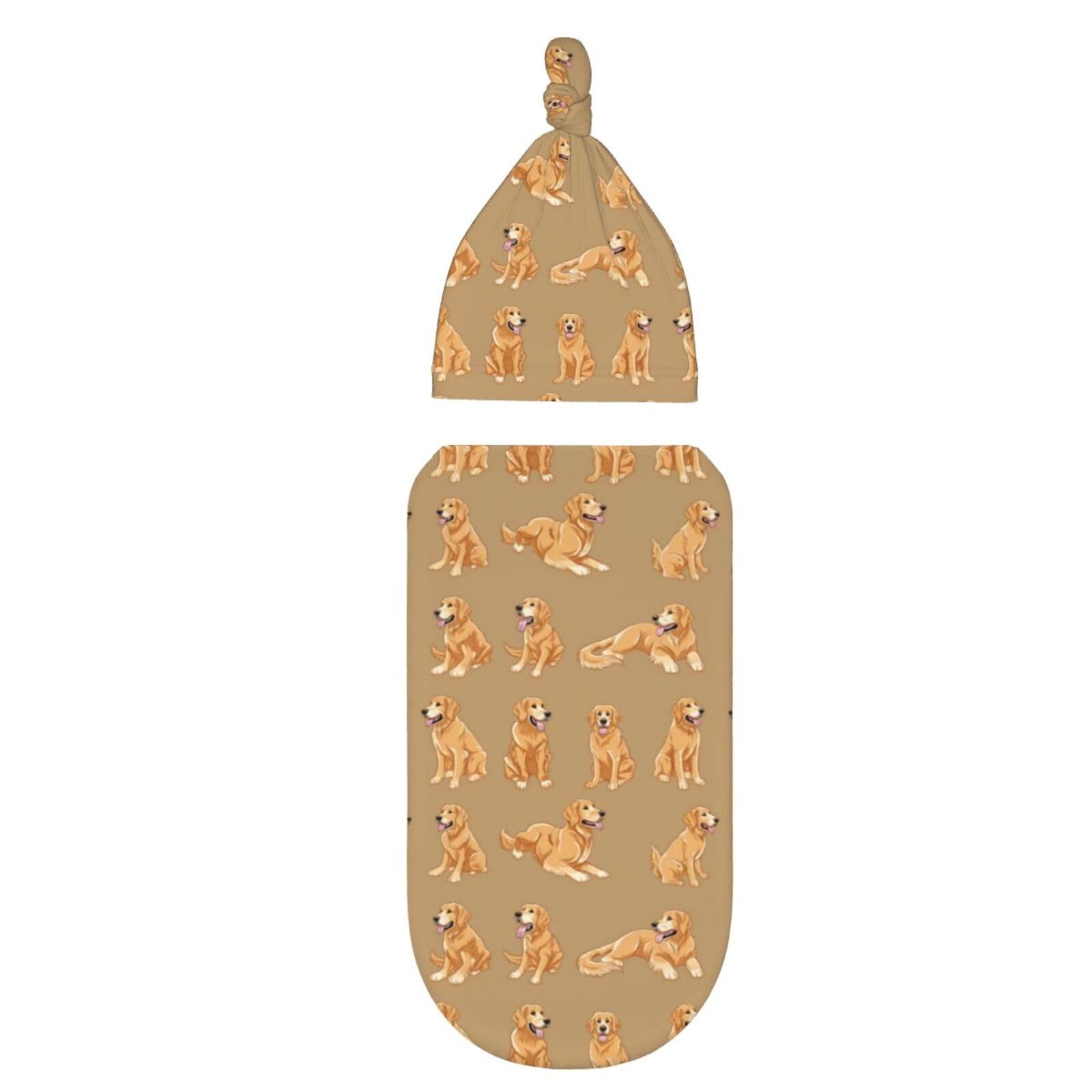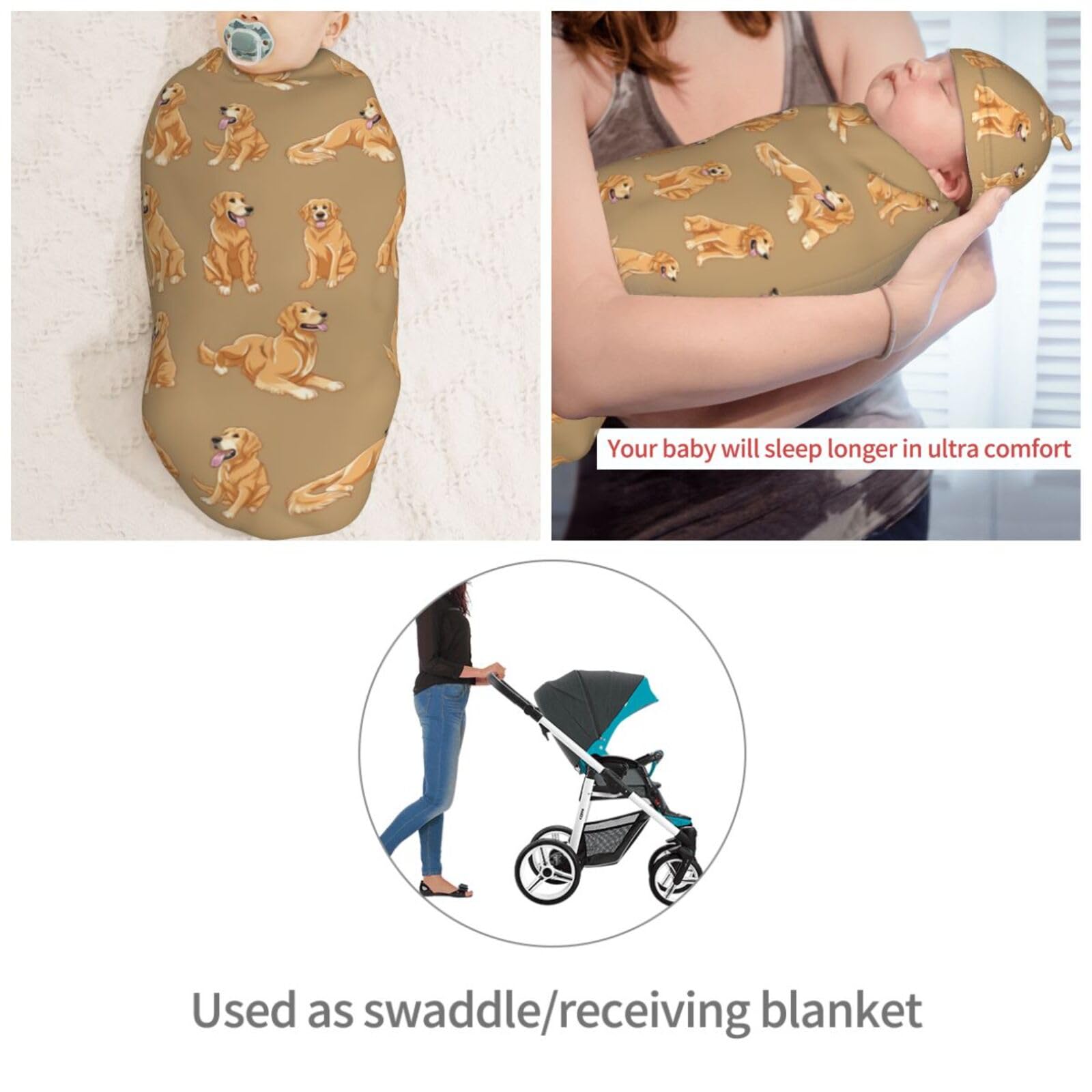 Size: Swaddle Blankets For Baby Boy/Girl Size: 20.8" X 11.4" ; And The Beanie Hat Size: 13"X6.5" . Funny Cute Golden Retriever Dog Swaddle Blankets Is For 0-6 Month Babies.