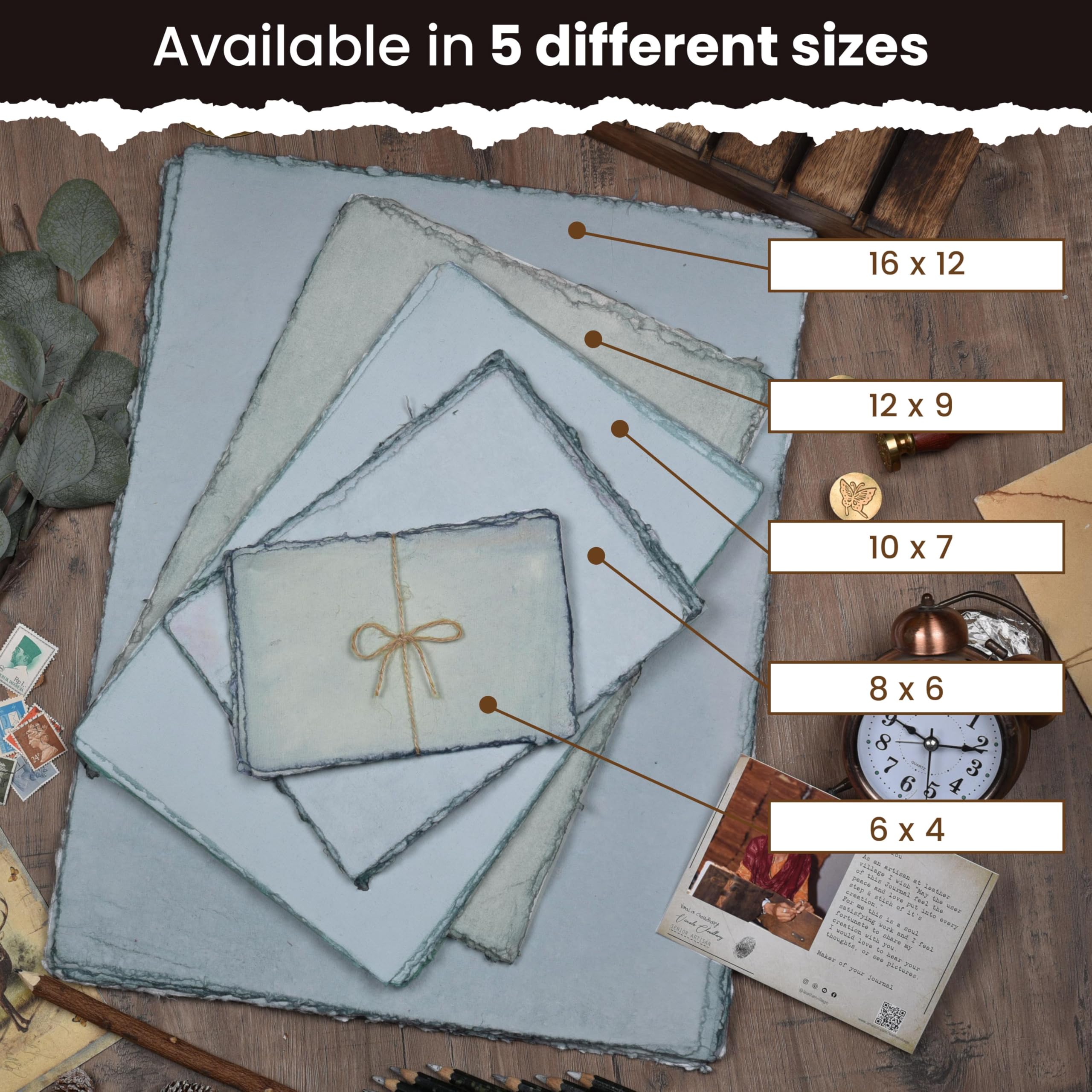 AVAILABLE IN 5 SIZES: Keeping in mind your specific needs Leather Village paper comes in Tan toned Paper In Various Sizes.