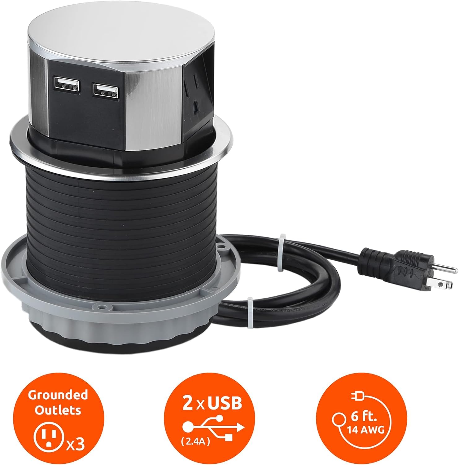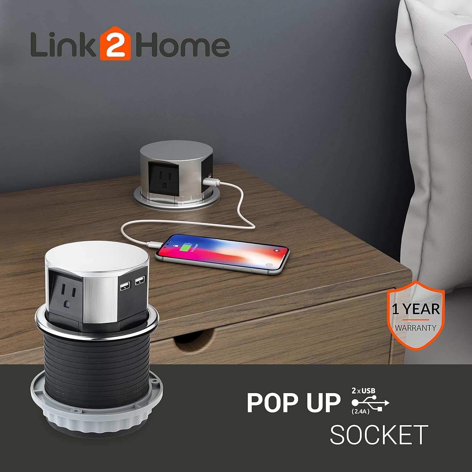 CLEAN LOOK: fully retractable with a stainless steel finish, the pop-up socket lets you add power in a sophisticated and unobtrusive way