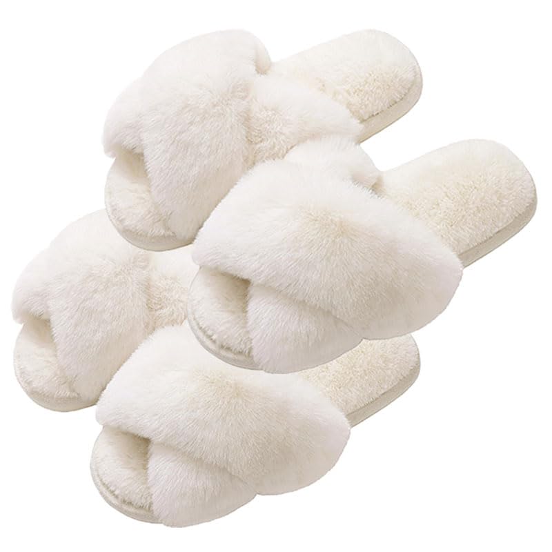 FUZZY HOUSE SLIPPERS: Fuzzy faux fur upper and footbed surround your foot in cloud comfort, making your feet cozy. A good choice for reducing muscle fatigue after a long day of work.