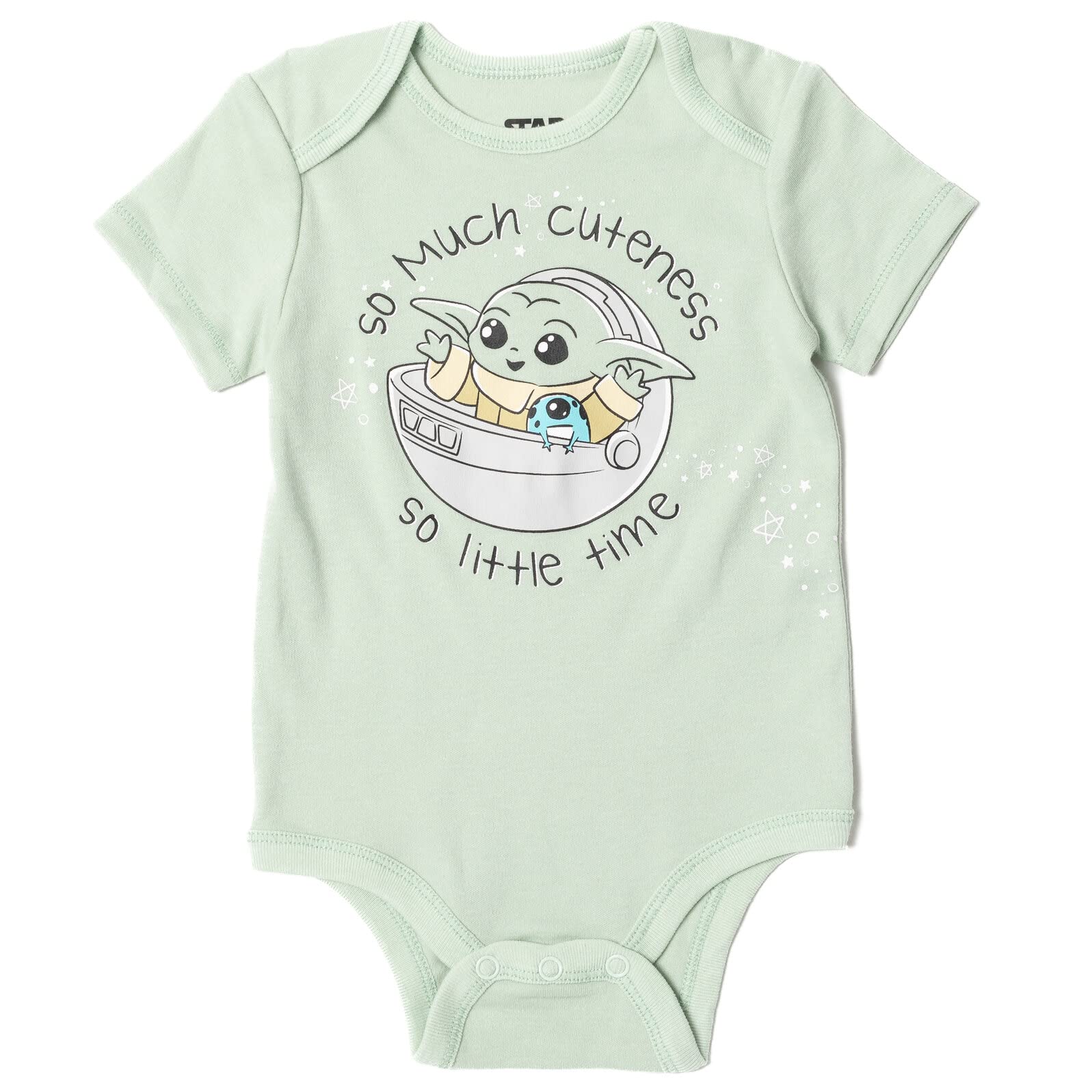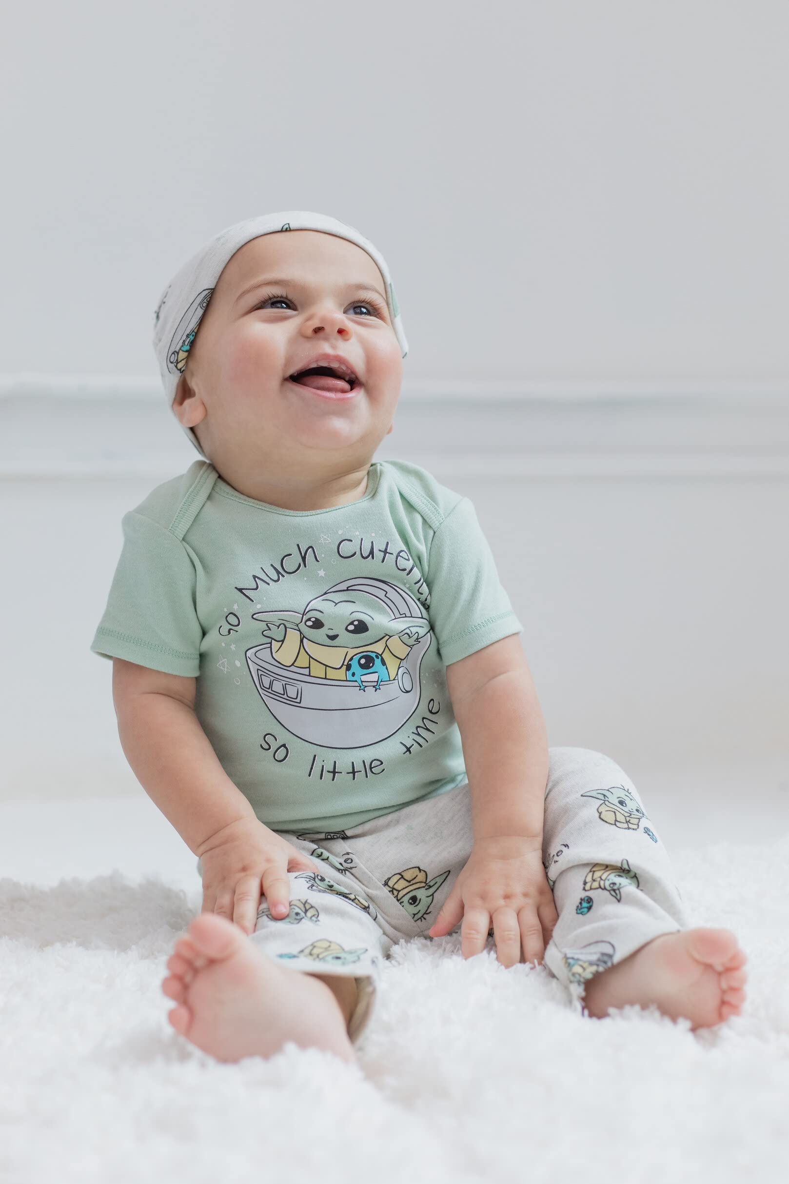 Officially licensed Star Wars The Mandalorian infant boys 3 piece mix n’ match clothing set: cute and stylish short sleeve bodysuit, pants, and cap