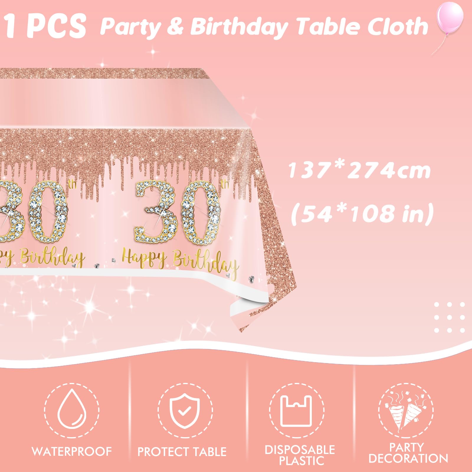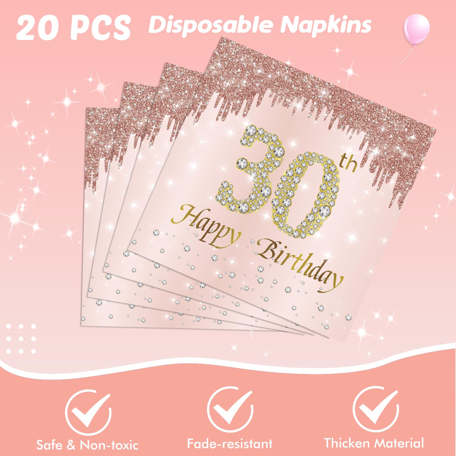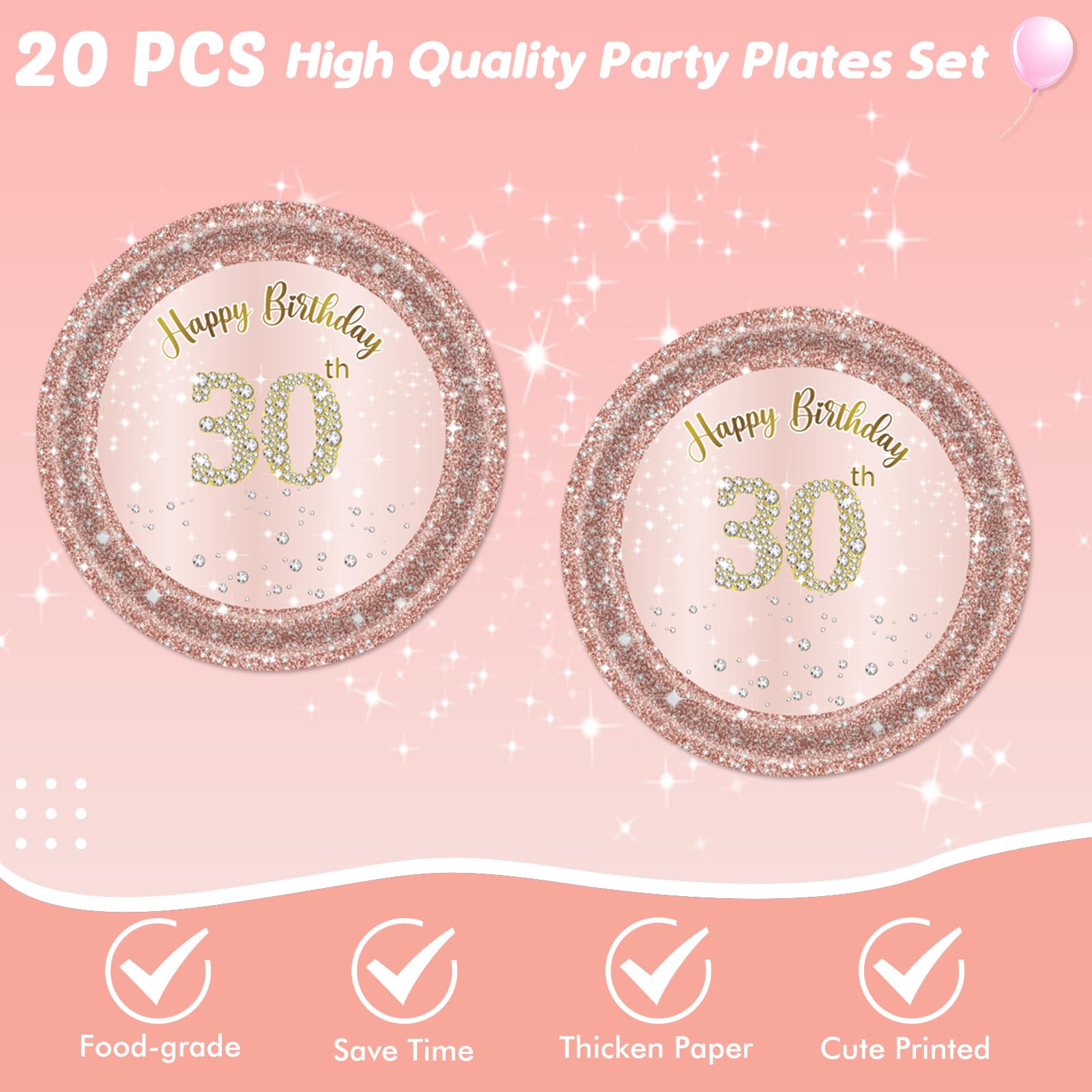 【Elegant and Classy Designs】This set features beautifully pink and rose gold combination. You will definitely surprise your guests with these elegant and classy designs in most occasions and formal events. Make the sweet 30 Birthday Party Rock