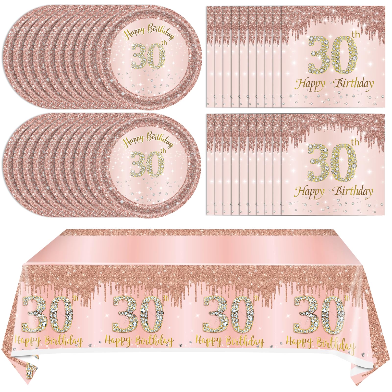 【Widely Use】The rose gold birthday plates, napkins and tablecloth sets are elegant and beautiful, well-suited as party backdrop or photo props, pool party, men and women anniversary decor. The good gift for women and girls, family, friends, or yourself. This gorgeous rose gold 30th birthday gifts for girls will make a special and memorable party that you and your guests will never forge