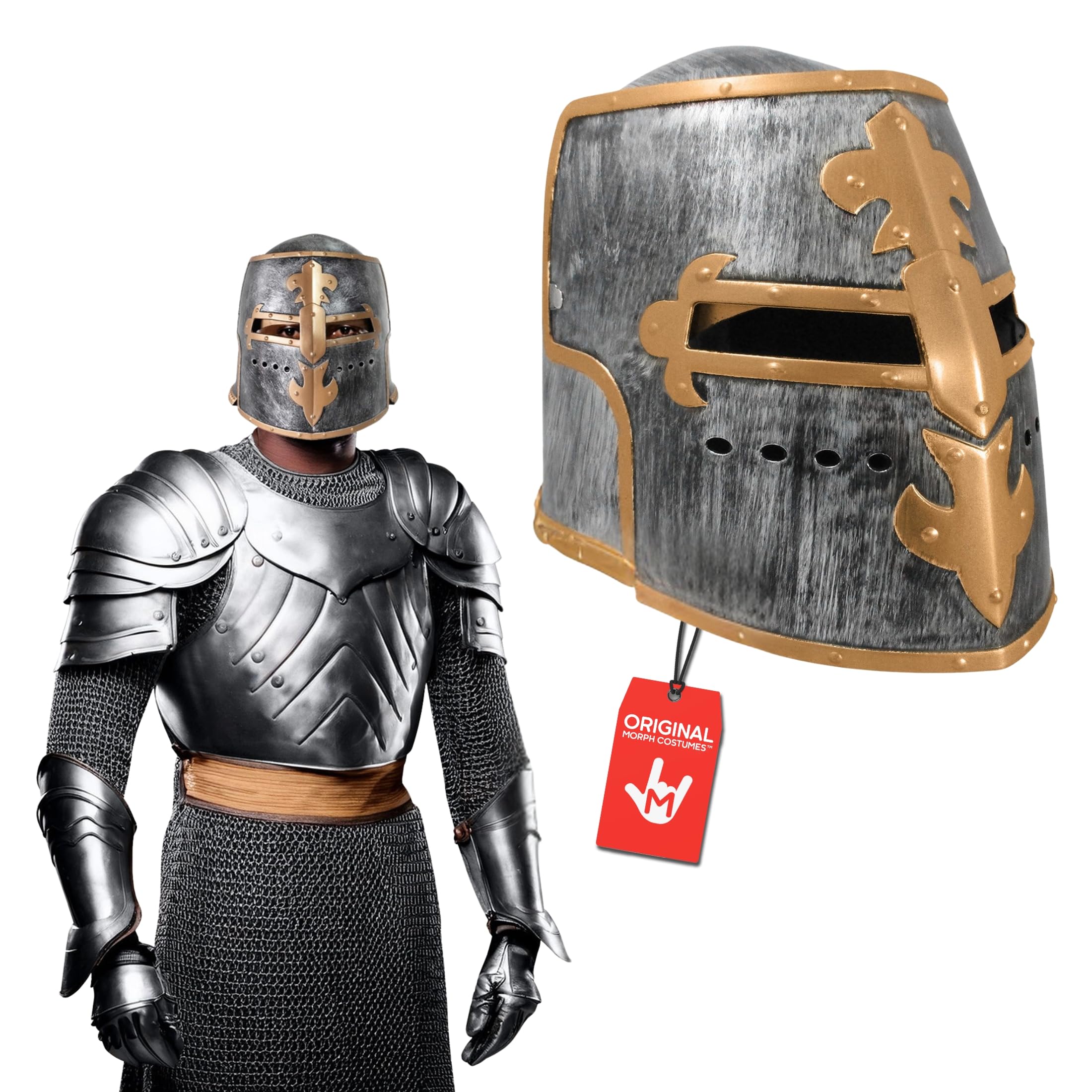 Perfect Design: This Halloween Knight Costume is available in Small, Medium, Large, X-Large, XX-Large, which can fit all body types. Note: Size STD and M, Size PLus and XL is the same product. This 2 size will be randomly shipped. Designed with a Realistic Chainmail Hood and Cape, this Knight Costume Set brings out the Medieval Knight Majestic vibe.