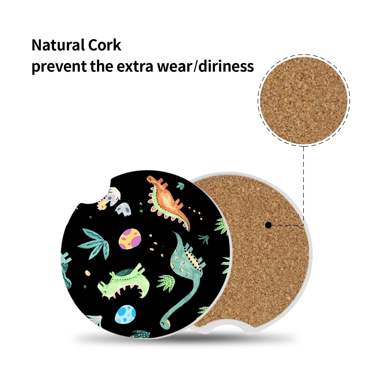 【Ceramic Stone & Non-Scratch Cork Base】Our car coaster adopts special ceramic manufacturing process, can easily absorb the water droplets outside the cup, keep your car cup holder dry and clean. The Cork back of the car coaster has a natural grip surface, even if there is some spill stick, which can be fixed to the car cup seat, will not easily move, and the appropriate isolation layer, to protect the car structure from high or low temperature cup body damage
