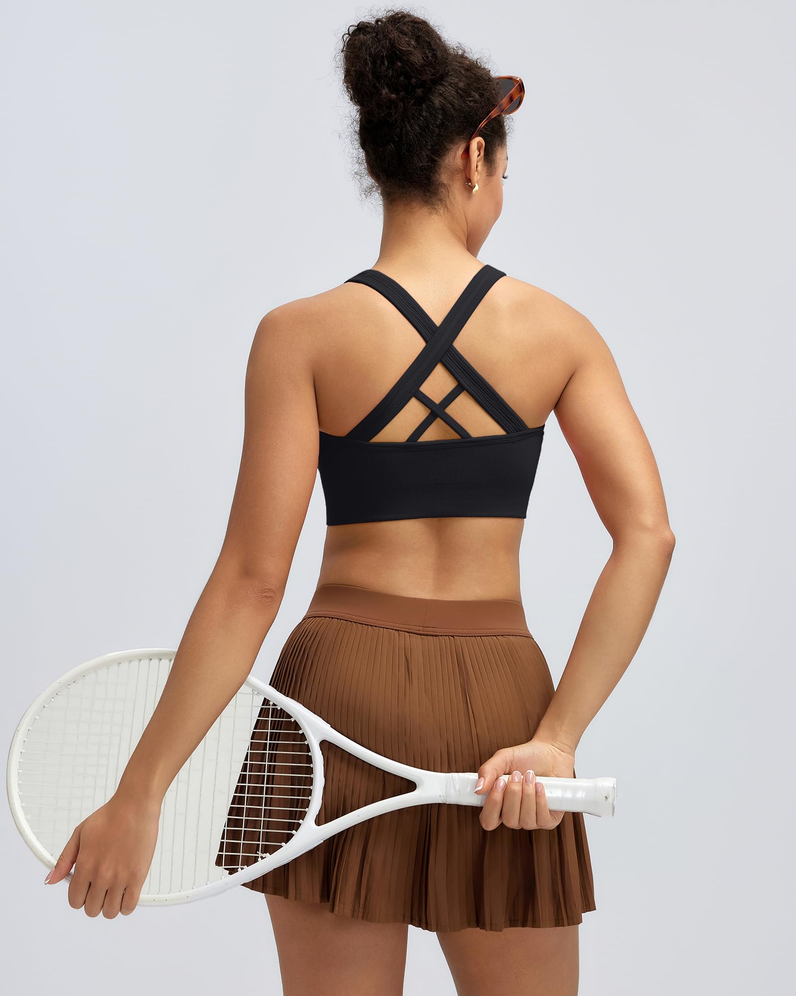WHY WE MADE THIS:Need a sports bra that does it all? Look no further.This sweat-wicking cross-strappy sports bra gives you the coverage and support you need for yoga, run,and the gym—without restricting your movement or breath fabric has added lycra that allows the sports bras for women to stretch with you and retain its shape over time.Slip in optional for full coverage—if you want it.This high impact sports bras for women is intended to provide great shape retention,long-lasting comfort.