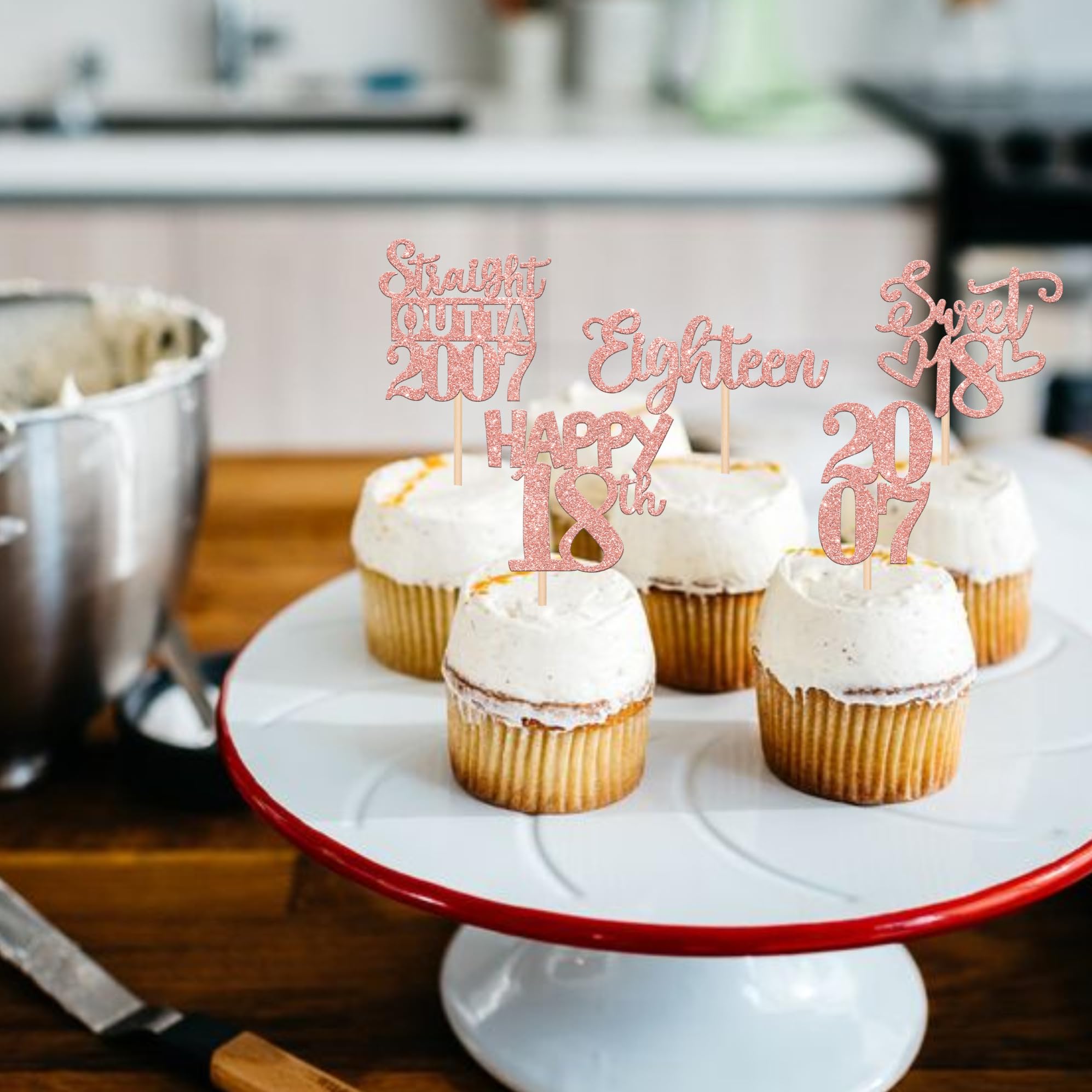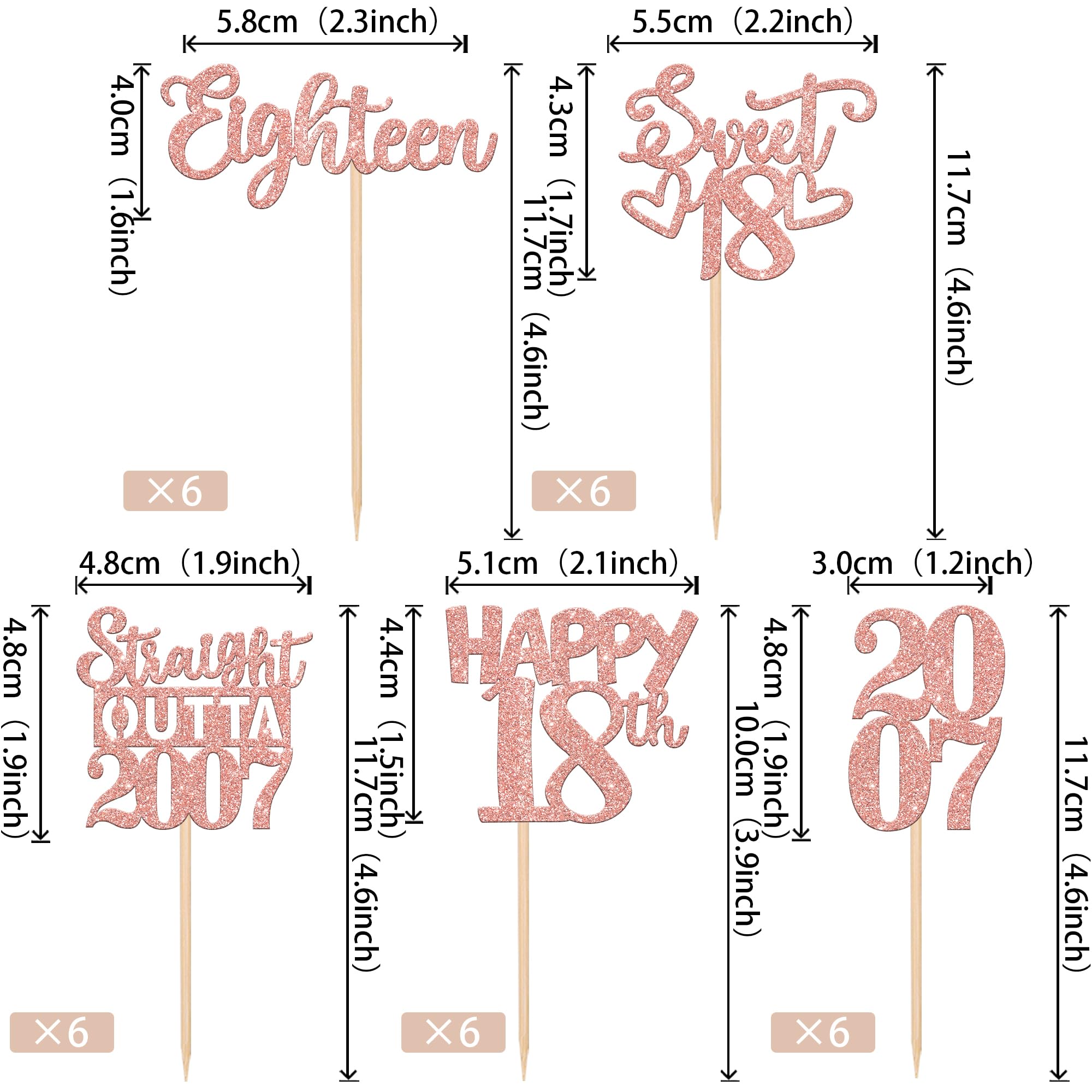 Straight Outta 2007 Cupcake Toppers for Happy 18th Birthday Anniversary Party Cake Decorations Supplies Perfect for happy 18th bithday theme party, straight outta 2007 theme party, 18th wedding anniversary theme party,cheers to 18 years theme party cupcake decorations supplies. Pack of 30 pcs,6 pcs of each design The size is 1.9*4.6 inch / 1.3*3.9 inch / 2.1*4.6 inch / 2.9*3.9 inch / 2.2*4.5 inch ( with stick ) Made of high quality paper card stock ,thick and thick and sturdy. These cupcake toppers are single glitter, the back is white, and they are intended for decoration only, please do not put them in oven or microwave. If the item you received has any defects, please contact us.we will deal with it within 24 hours.