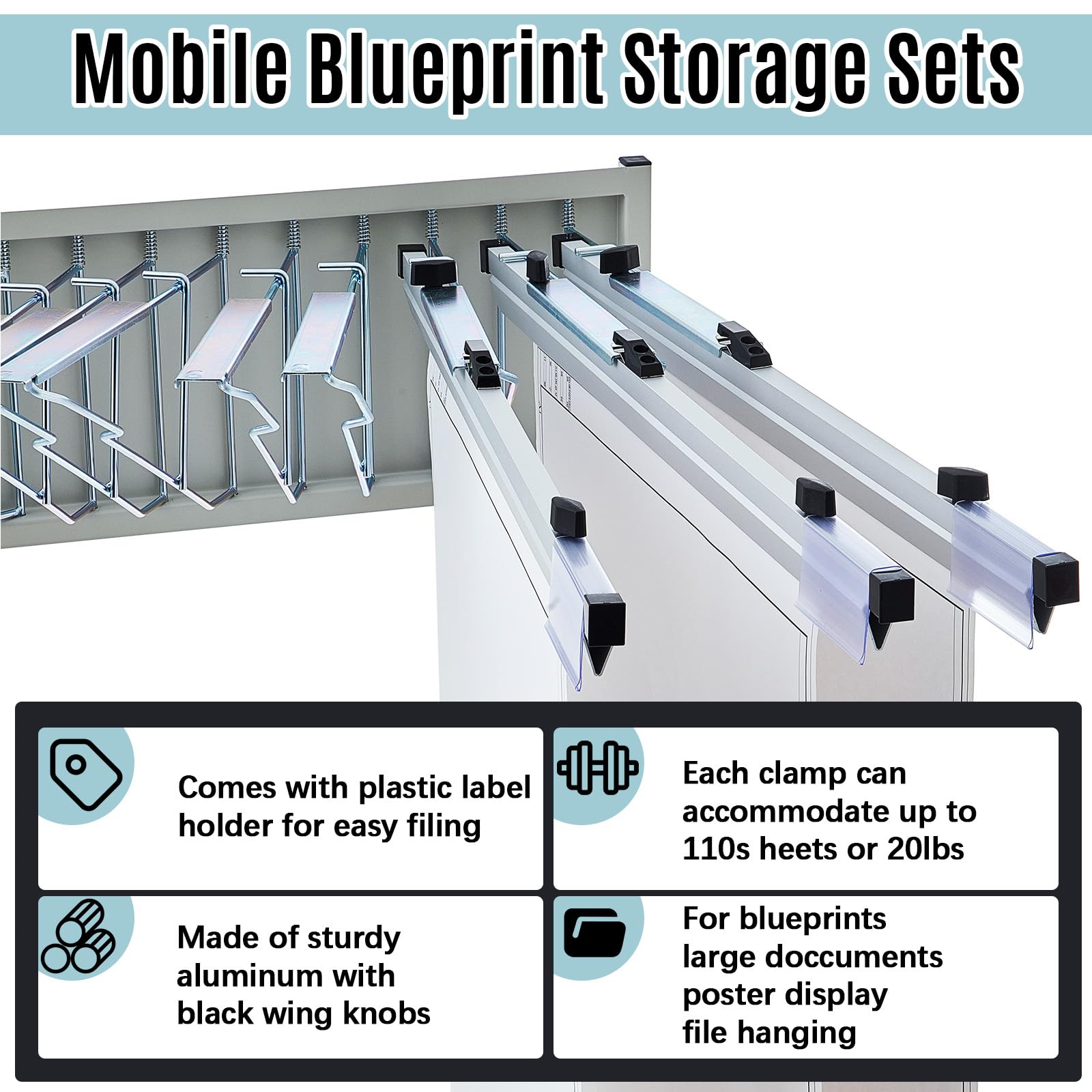 High Capacity: the blueprint storage rack has been designed for high load capacity; Each hanging clamp can hold up to 100 drawings, this allows for systematic organization of numerous documents; Turn your disordered workplace into a streamlined, well organized space. blue print storage organizer is not limited to storing and displaying blueprints, it can also be used as a poster display stand, architectural drawing storage, map storage and other uses you need