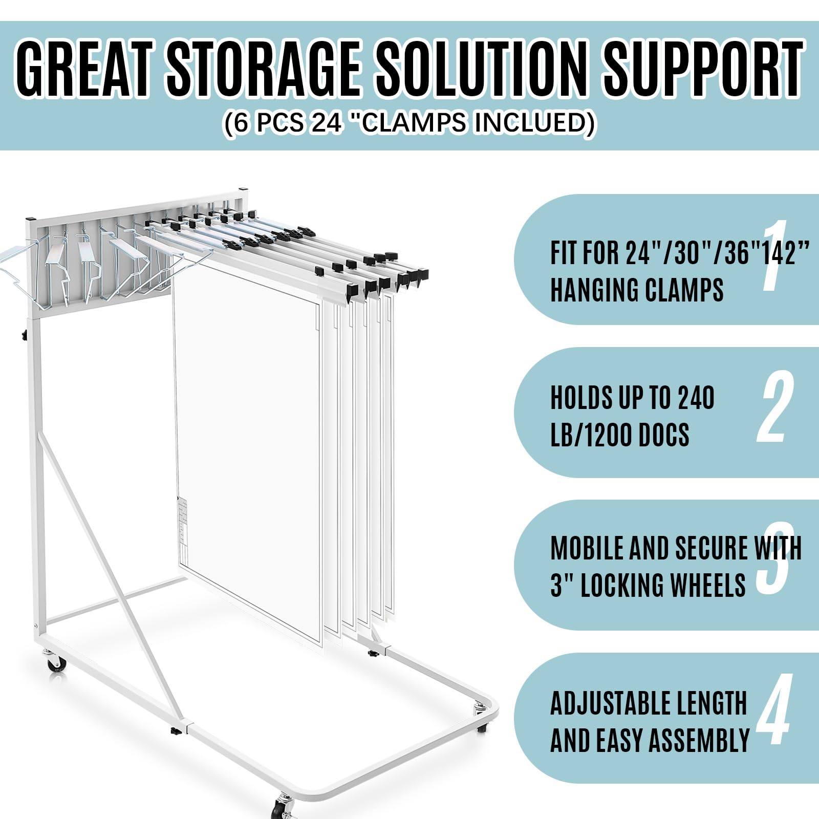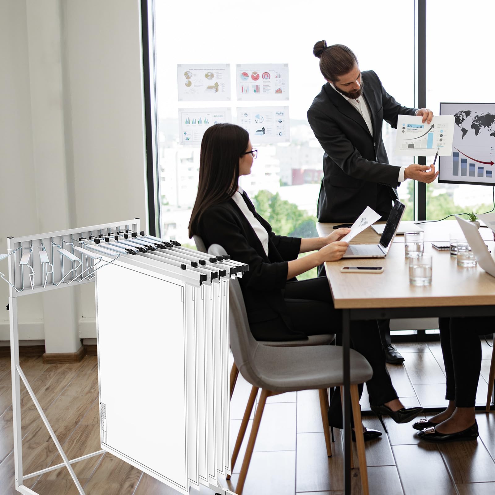 Ample Storage Size: with hanging clamps that are 30 inches in size and width adjustment capabilities of blueprint holder that range from 28.5-46.5 inches, it brings extended storage convenience to your space; The height adjustment features from 48-66 inches allow for easy customizability to cater to various document sizes, and can hold up to 12 clamps, these make our mobile blueprint storage rack the ideal document organization solution