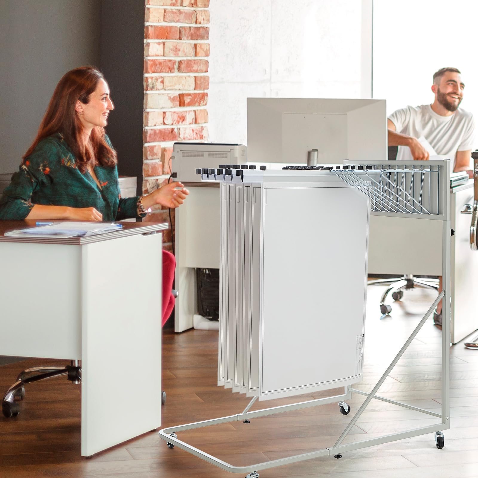 User Friendly Features: the plan holder user friendly features such as each hanging clamp with a clear plastic label holder at the front, for effortless identification of your documents; Added to this, the rack comes with 4 wheels and brakes, making it mobile, yet stable to avoid unwanted slips on the floor