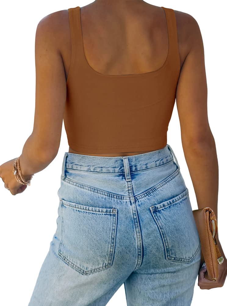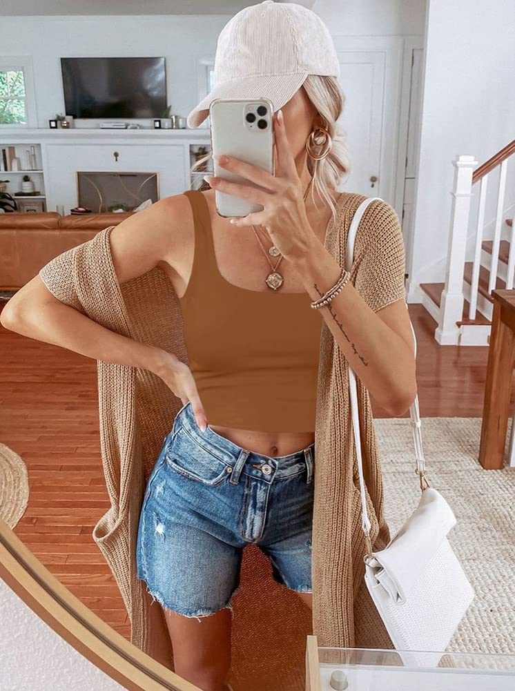 🌸Versatile,can be worn in many different ways!This square neck crop top for teen girls/women is basic and chic.Cute with yoga pants, joggers,skirts or high waist jeans!