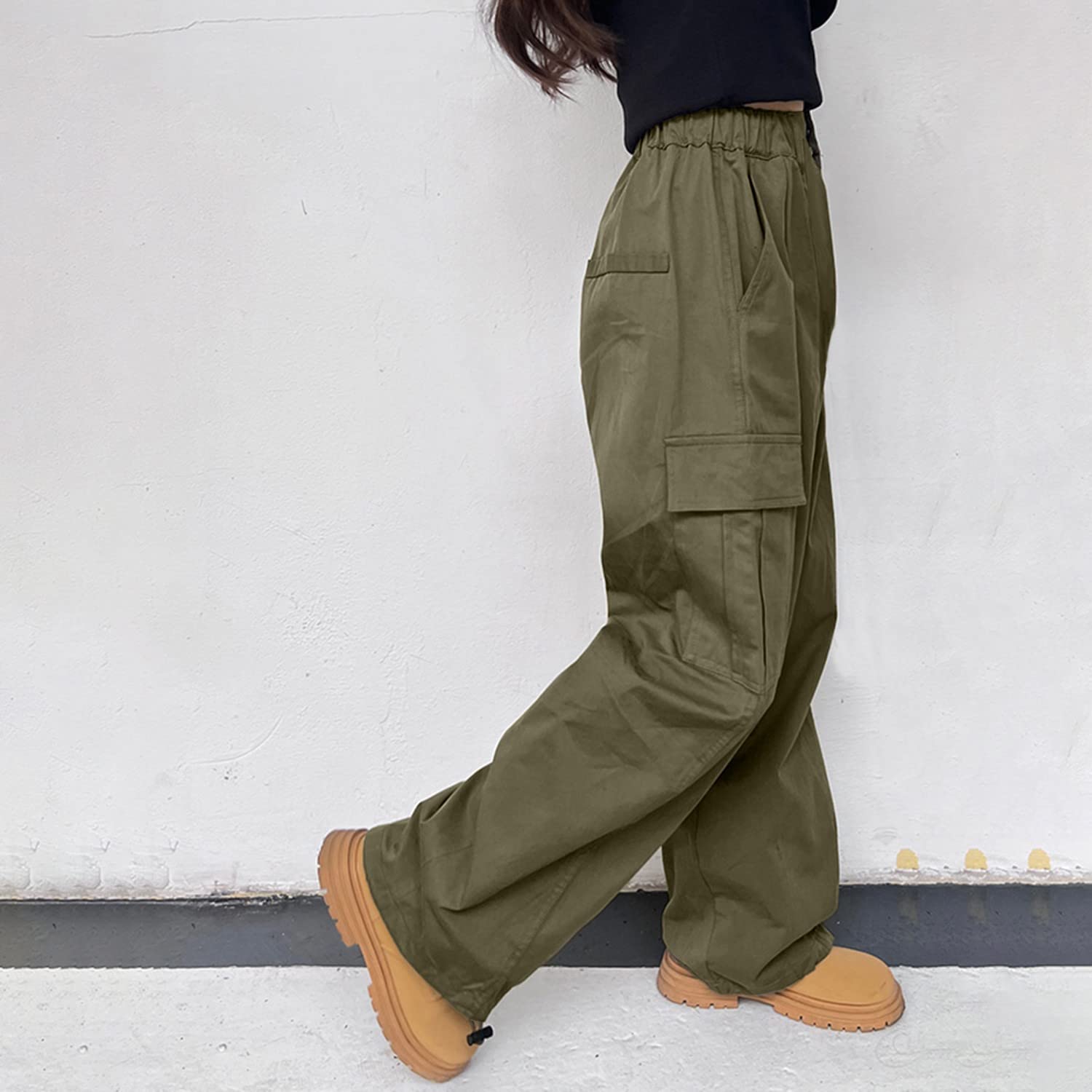 [Match] Pants for girls will work great with your favorite top or boots, such as daily t-shirt, cami tops, sweater vest, jacket, overalls, cardigan, y2k skirt, canvas shoes, high boots, sneakers, etc. 4 colors available khaki green pink black cargo pants must have closet staple piece.