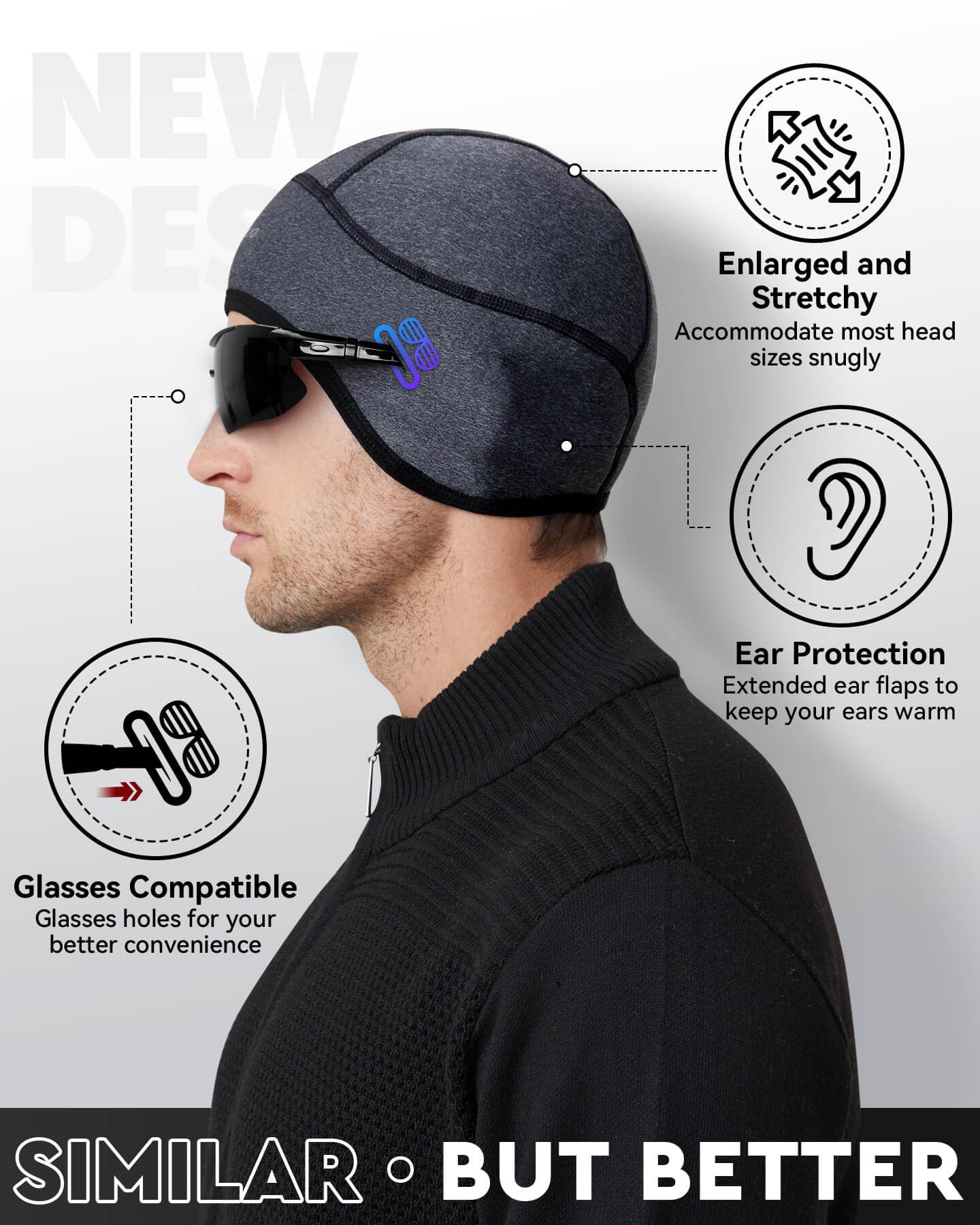π₯ γππππ πππ ππππ πππ ππππγ Get yourself ready for winter with our thermal helmet liner with glasses slots! Our winter skull cap, with smooth wind-resistant surface and lined with cozy fleece, which adds to the warmth as well as comfort and retains heat effectively, helps keep the wind chill out and keep your head warm while running or cycling in chilly weathers. The warmish EAR FLAPS are designed to fully cover your ears and provide an excellent barrier from the cold.