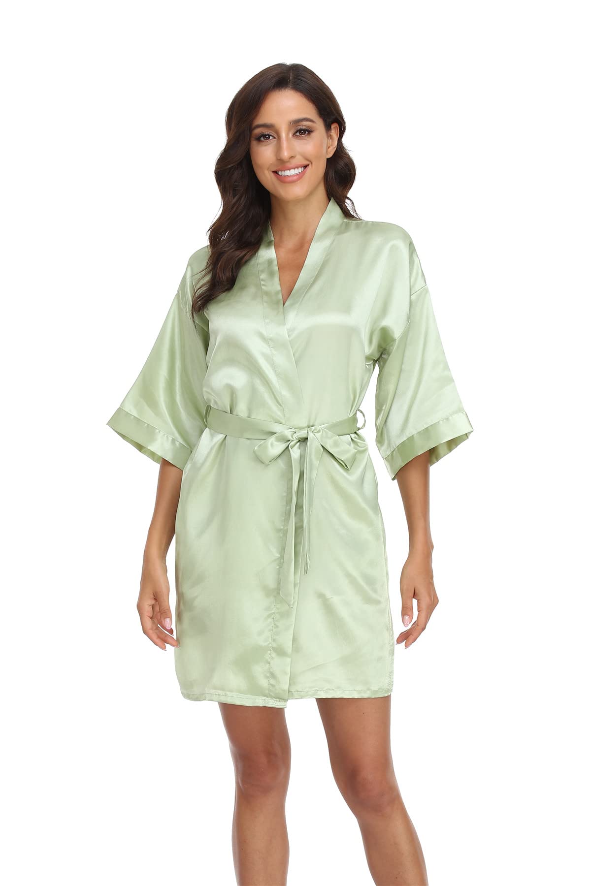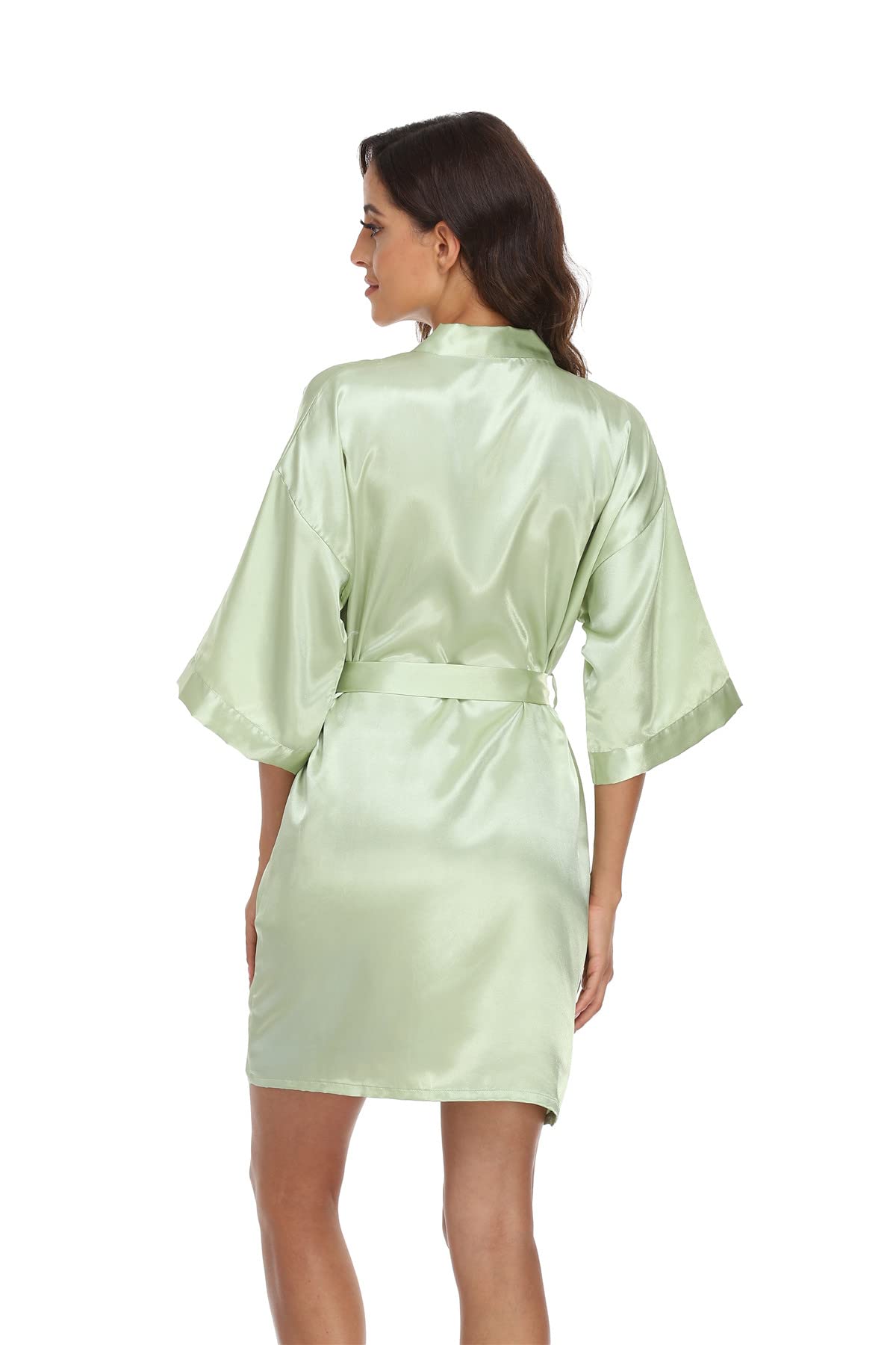 Solid color satin robes for women with elegant oblique V-neck clear design.