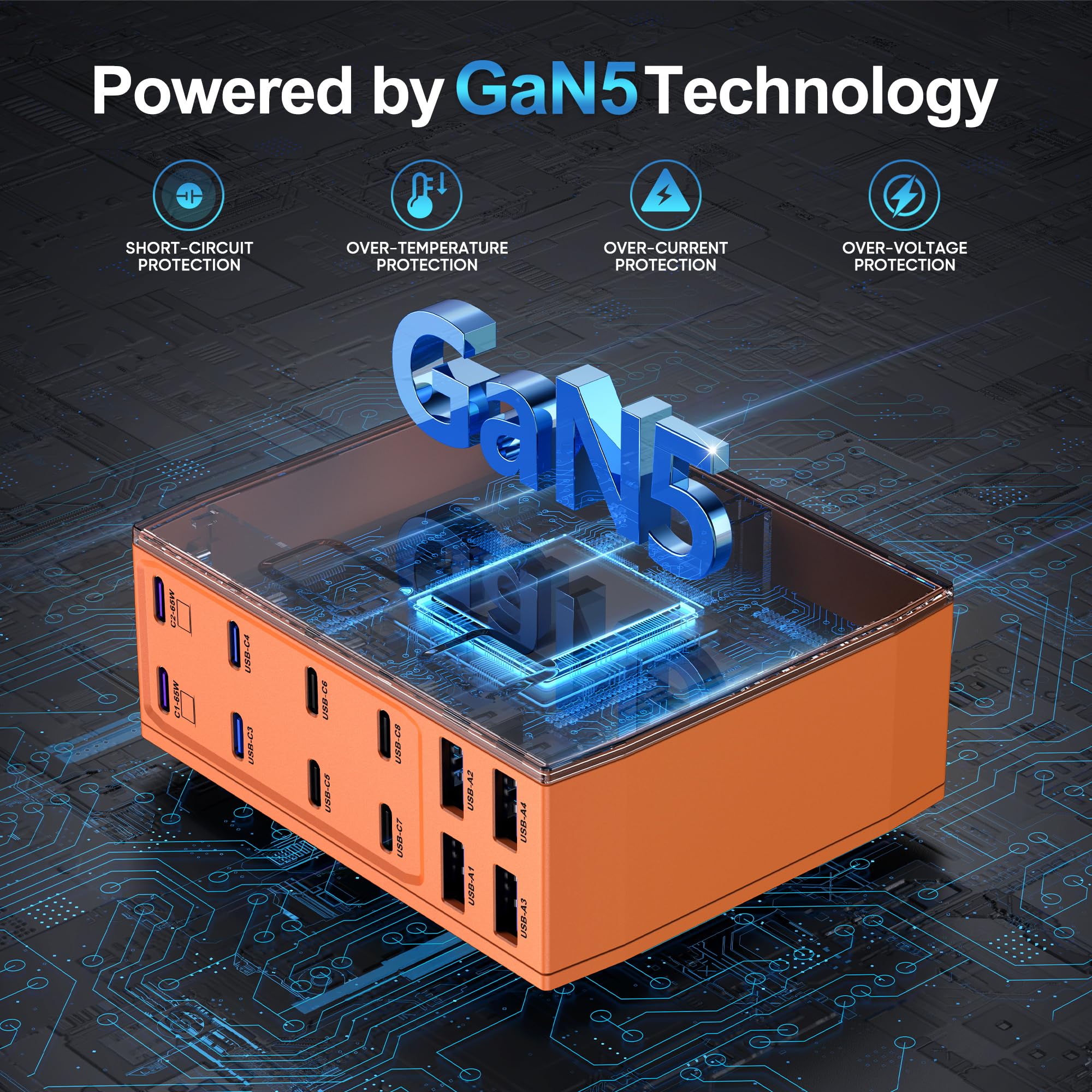 【Latest GaN 5 Charging Station】:GaN charger offer advantages over traditional chargers, featuring a more robust safety protection system. Utilizing IceShield 5.0 Gallium Nitride (GaN) technology, protecting against overcharging, overheating, short circuits, overcurrent, and overvoltage. Multi built-in protection systems and Advanced chips deliver more efficient charging power and lower heat generation compared to previous-gen GaN technology, ensuring device safety and extending its lifespan.