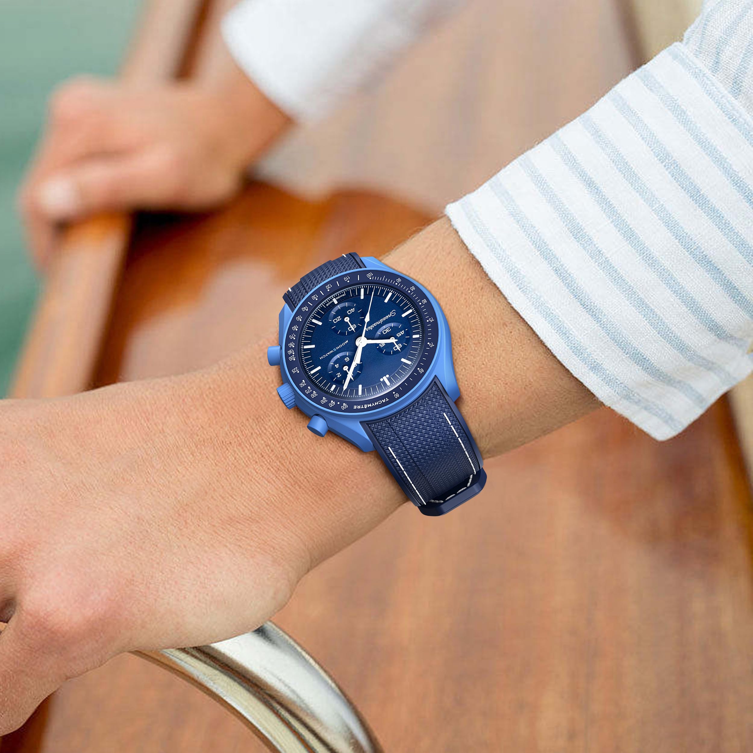 【Seamless Integration】Our strap for swatch omega moon watch is designed with a seamless integration curved in mind. The straps seamlessly connect to your watch, providing a secure and reliable fit. With our carefully engineered designs, you can enjoy peace of mind knowing that your watch is perfect match attached to the strap.